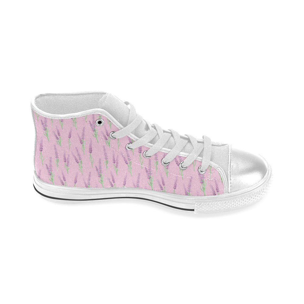 Lavender pattern pink background Women's High Top Canvas Shoes White