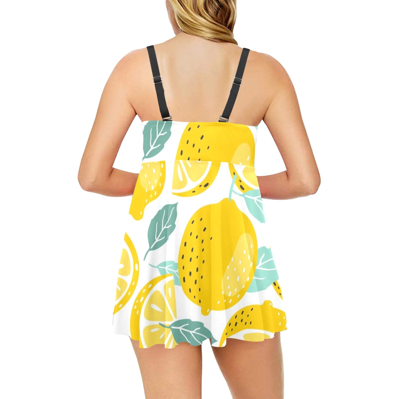 lemon design pattern Chest Sexy Pleated Two Piece Swim Dress