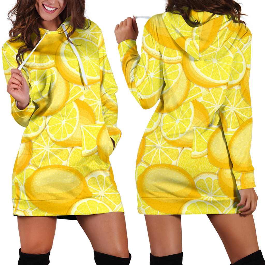 lemon pattern Women's Hoodie Dress is a uniqued design and limited item. It made to order, hand printed, and sewn with love in our factory.