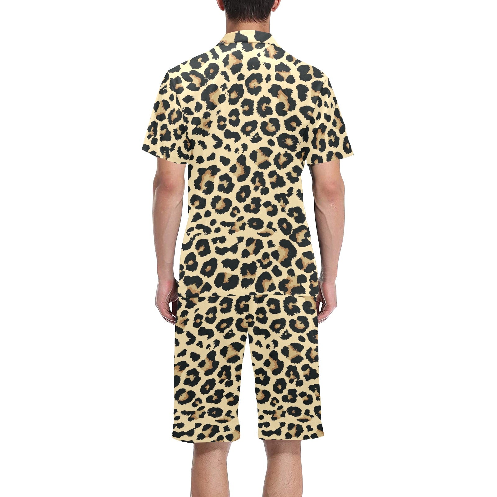 Leopard print design pattern Men's V-Neck Short Pajama Set