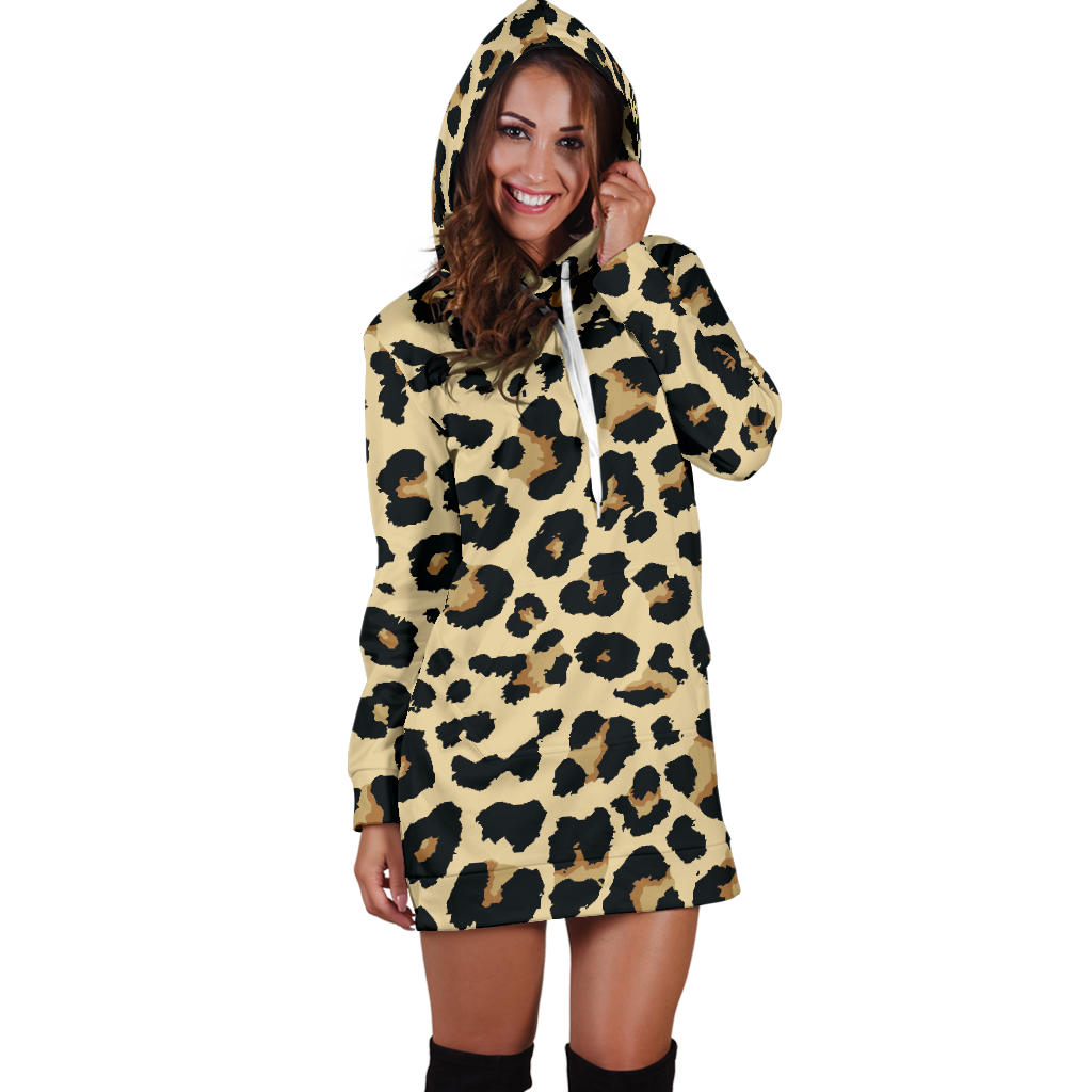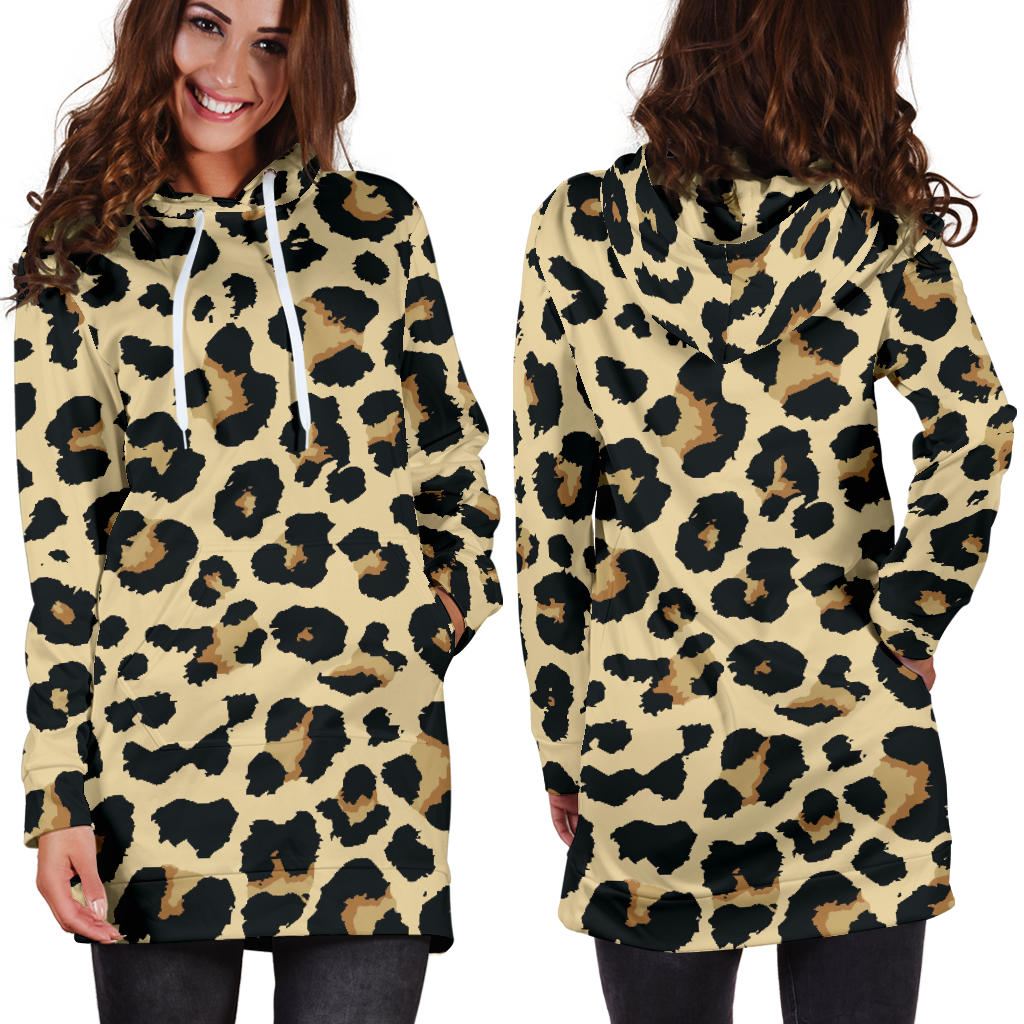 Leopard print design pattern Women's Hoodie Dress is a uniqued design and limited item. It made to order, hand printed, and sewn with love in our factory.