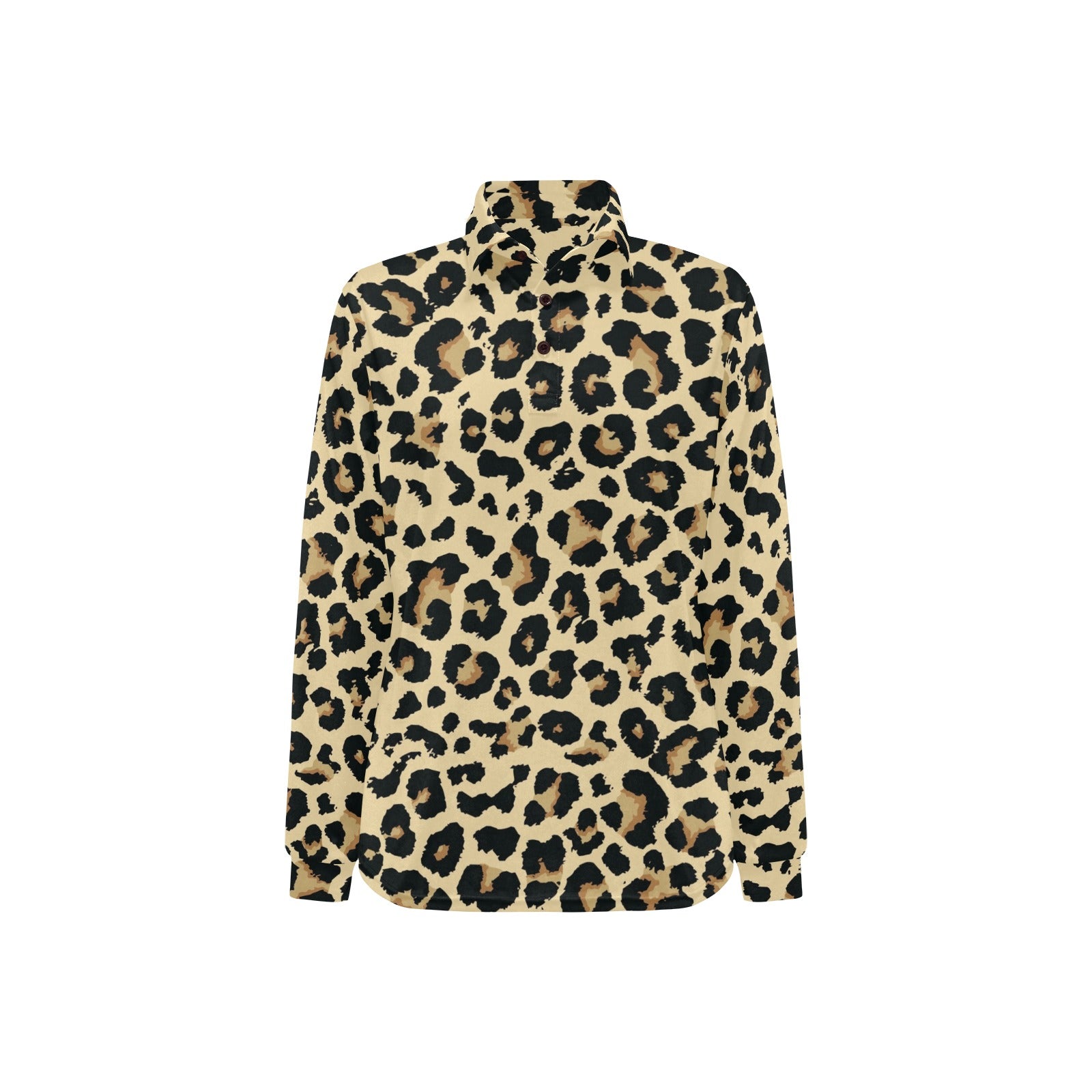 Leopard print design pattern Women's Long Sleeve Polo Shirt