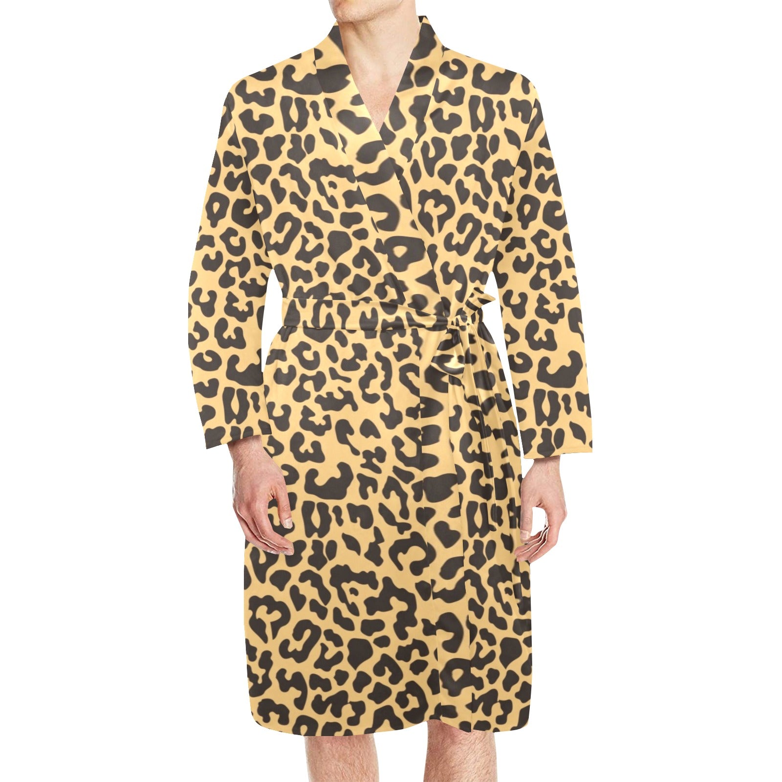 Leopard skin print Men's Long Sleeve Belted Night Robe
