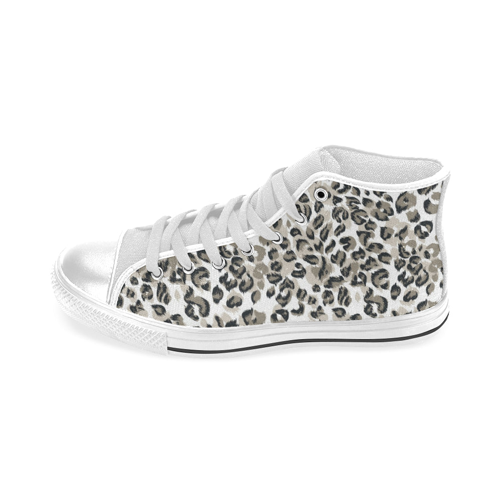 Leopard skin print pattern Men's High Top Canvas Shoes White
