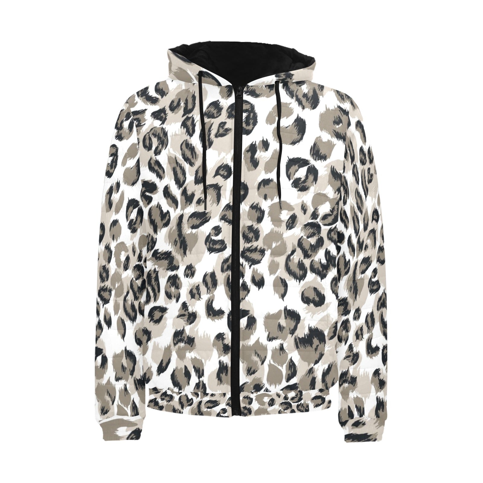 Leopard skin print pattern Men's Padded Hooded Jacket