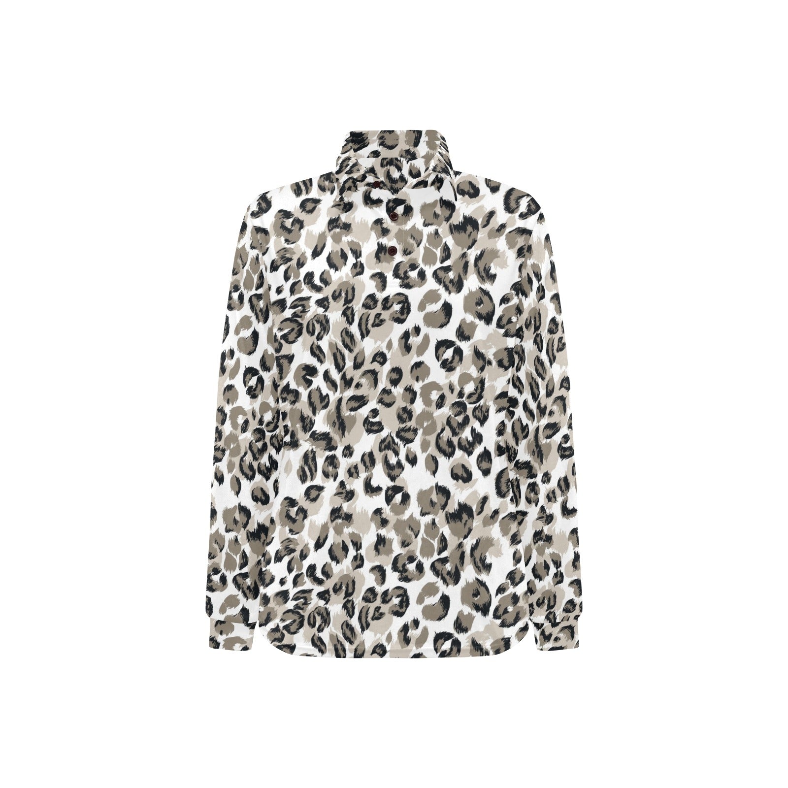 Leopard skin print pattern Women's Long Sleeve Polo Shirt