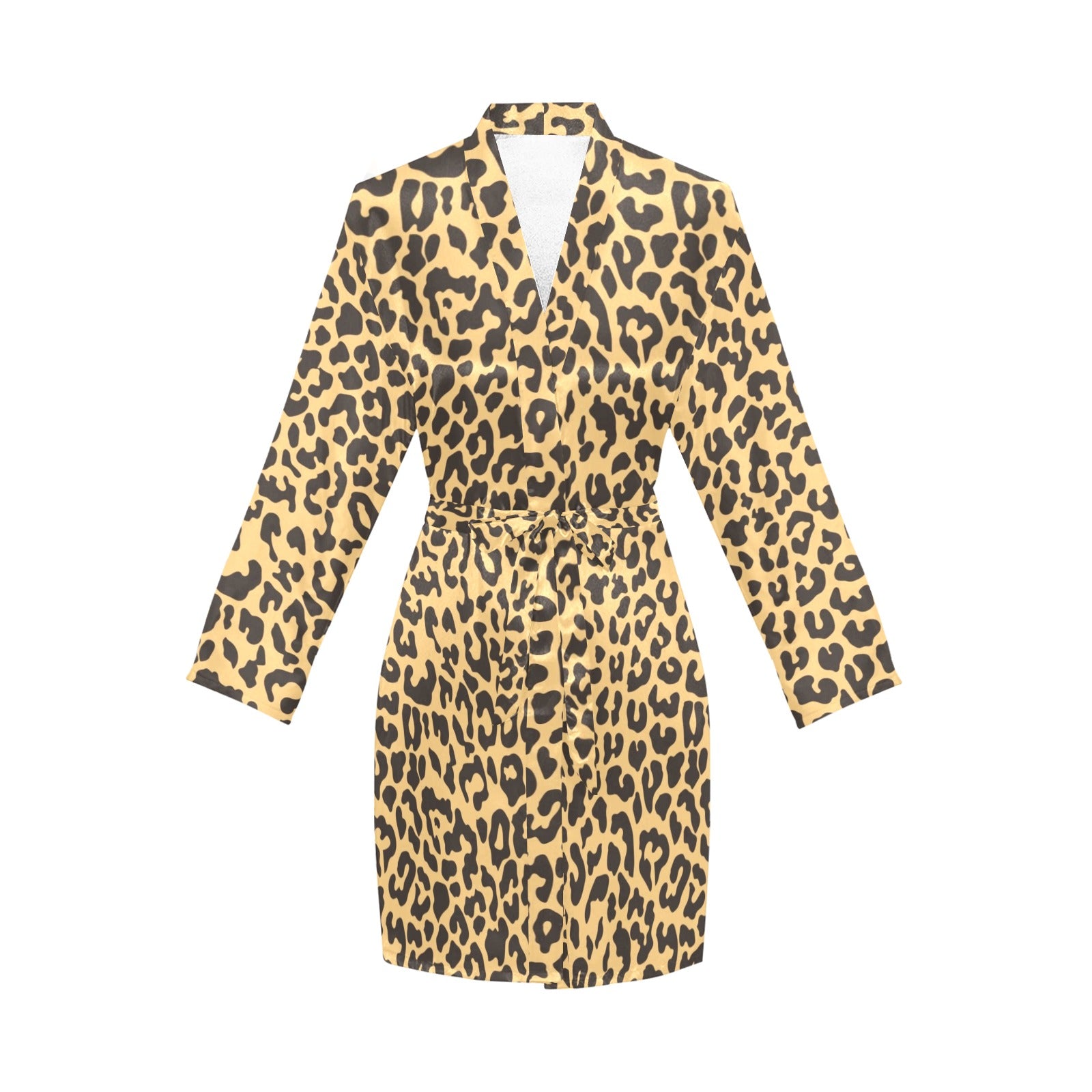 Leopard skin print Women's Long Sleeve Belted Night Robe