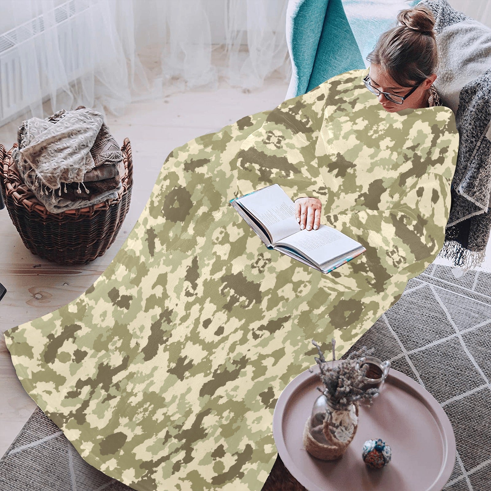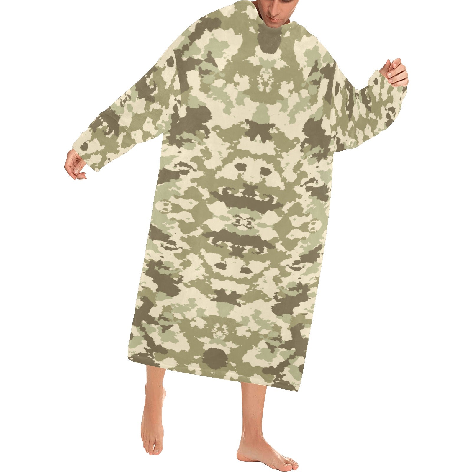 Light Green camouflage pattern Blanket Robe with Sleeves