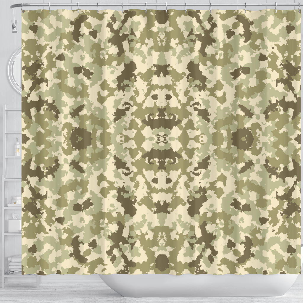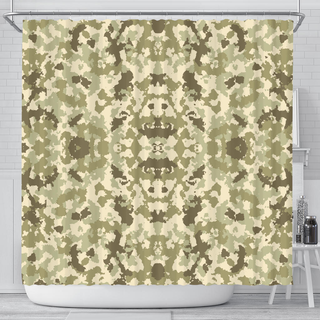 Light Green camouflage pattern Shower Curtain is a uniqued design and limited item. It made to order, hand printed, and sewn with love in our factory.