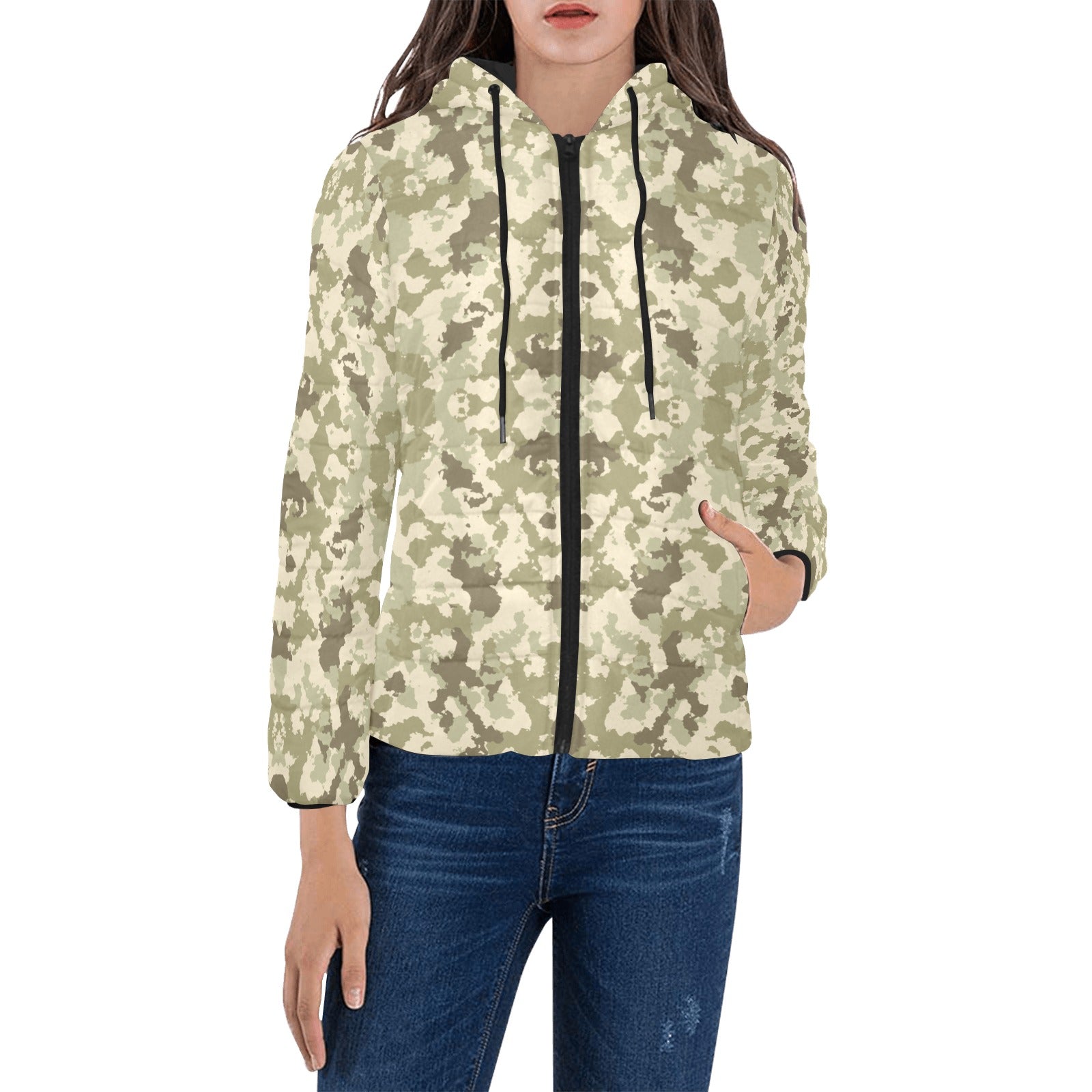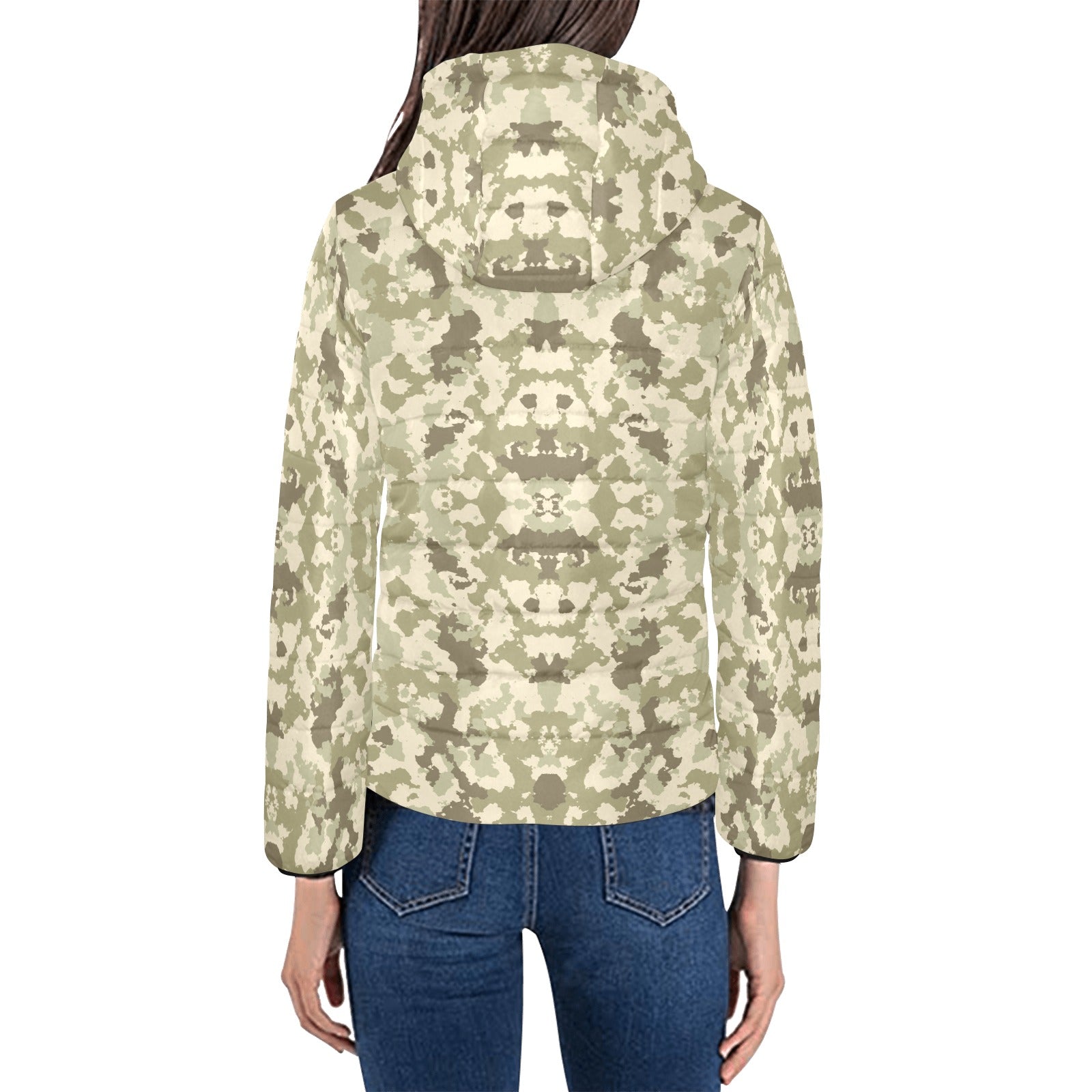 Light Green camouflage pattern Women's Padded Hooded Jacket