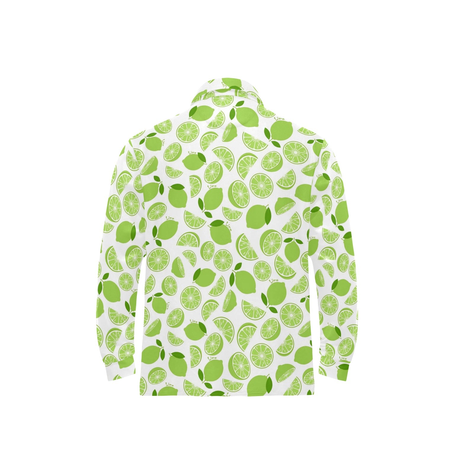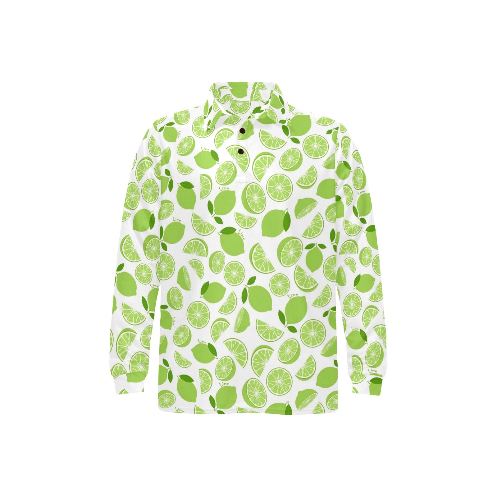 Lime design pattern Men's Long Sleeve Polo Shirt