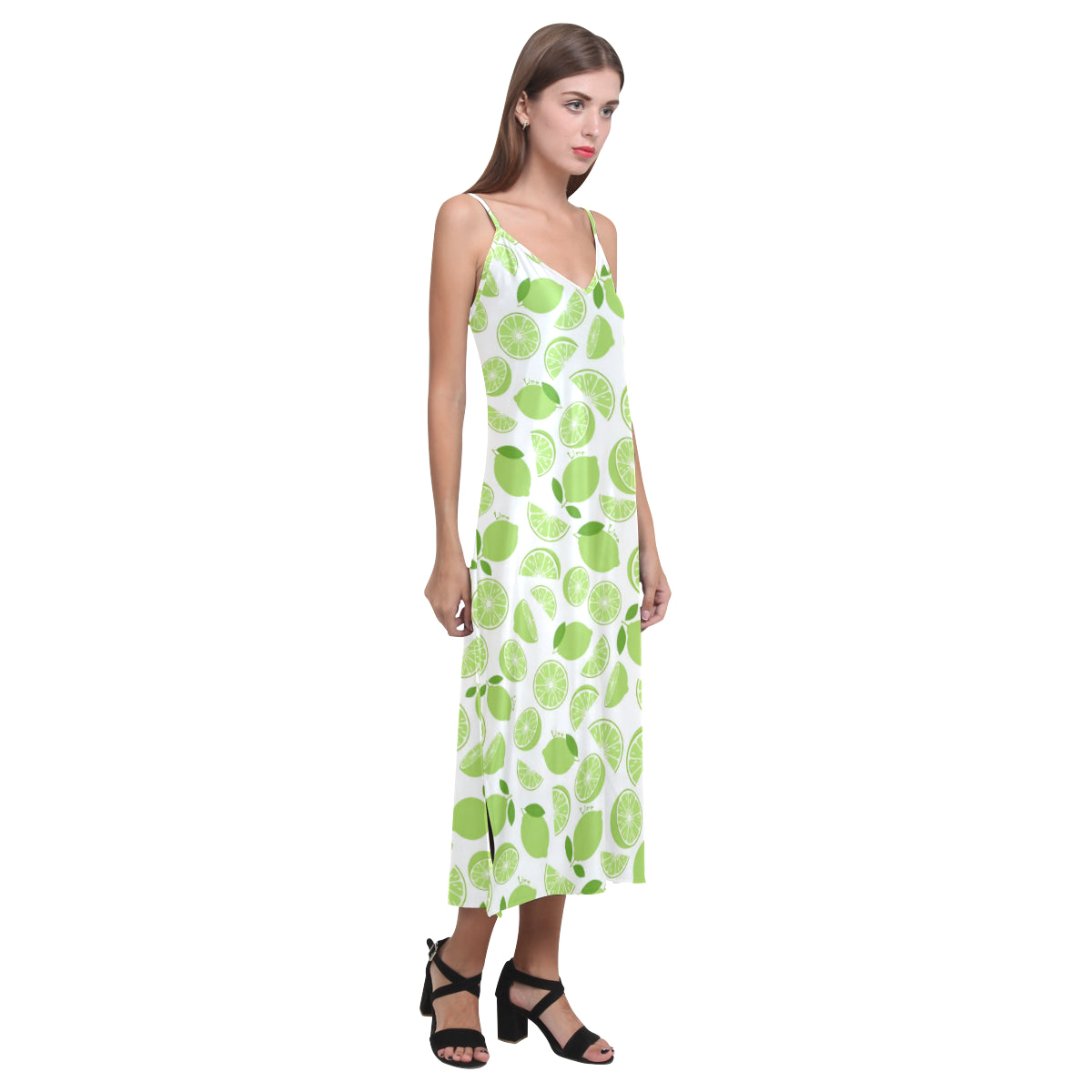 Lime design pattern V-Neck Open Fork Long Dress is a uniqued design and limited item. It made to order, hand printed, and sewn with love in our factory.
