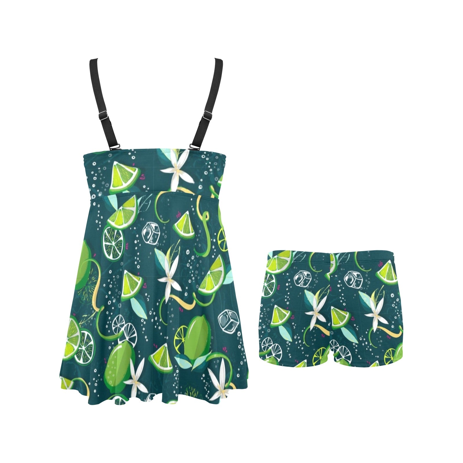 Lime ice flower pattern Chest Sexy Pleated Two Piece Swim Dress