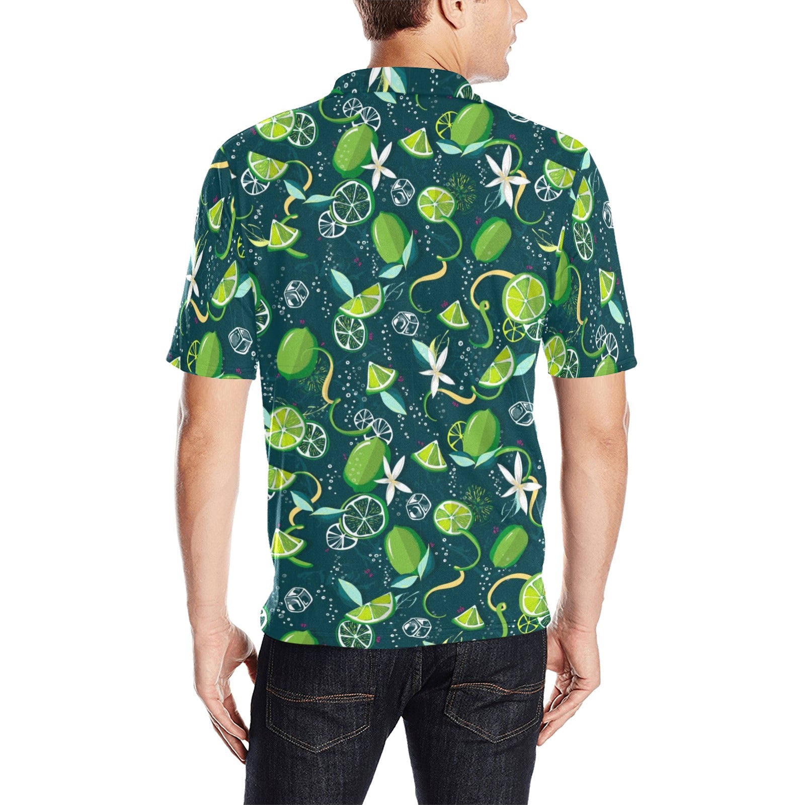 Lime ice flower pattern Men's All Over Print Polo Shirt