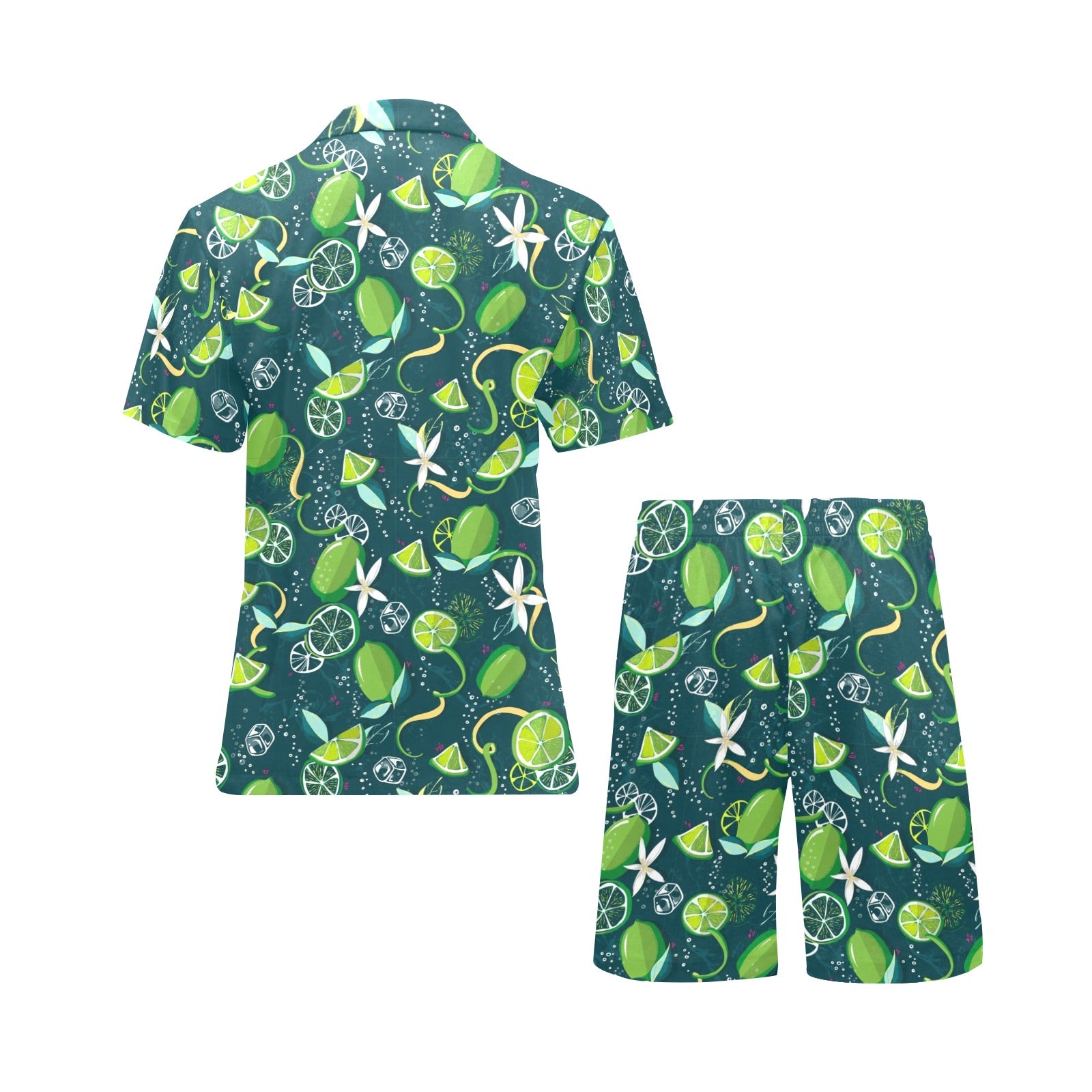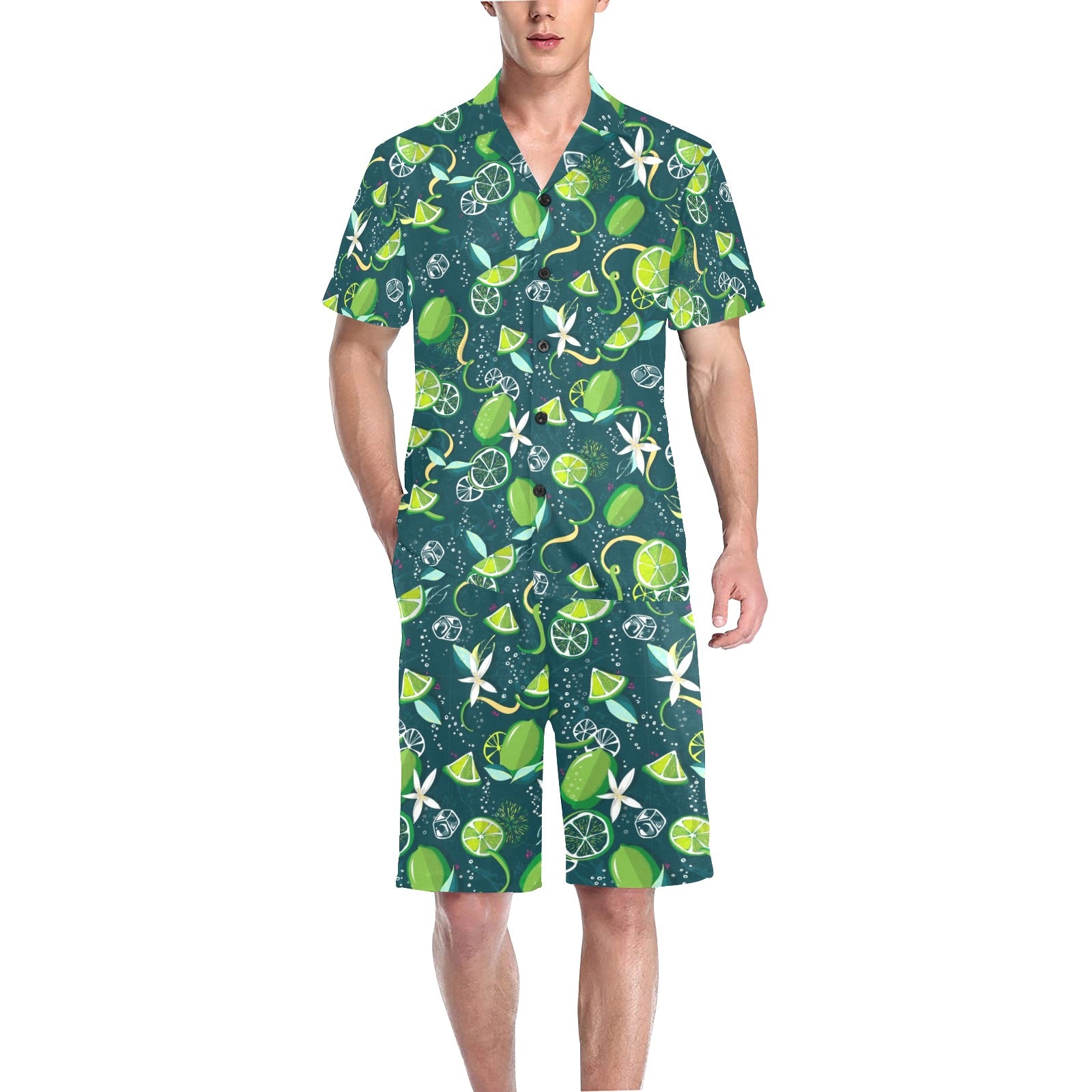 Lime ice flower pattern Men's V-Neck Short Pajama Set