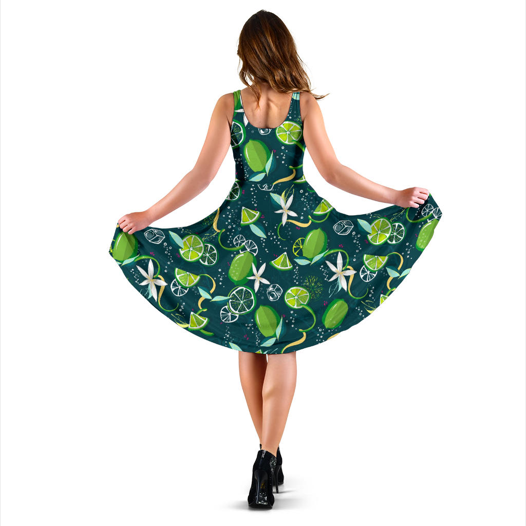 Lime Ice Flower Pattern Sleeveless Midi Dress