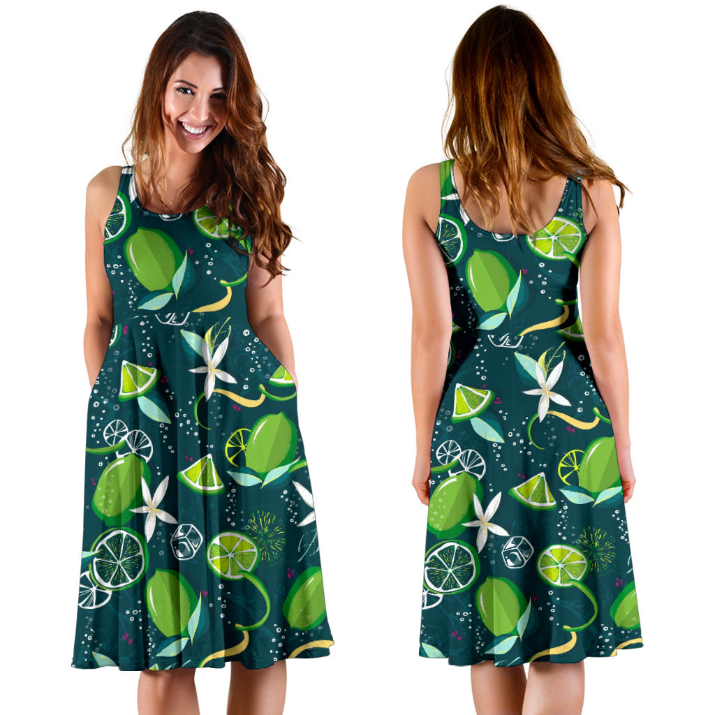 Lime ice flower pattern Sleeveless Midi Dress is a uniqued design and limited item. It made to order, hand printed, and sewn with love in our factory.
