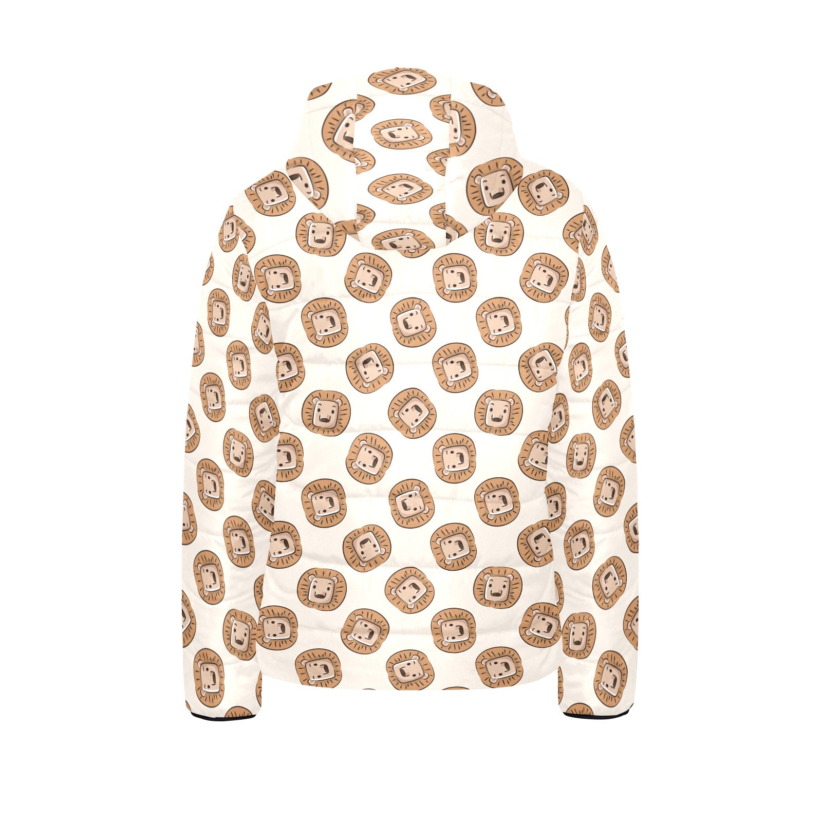 Lion Pattern Print Design 01 Kids' Boys' Girls' Padded Hooded Jacket
