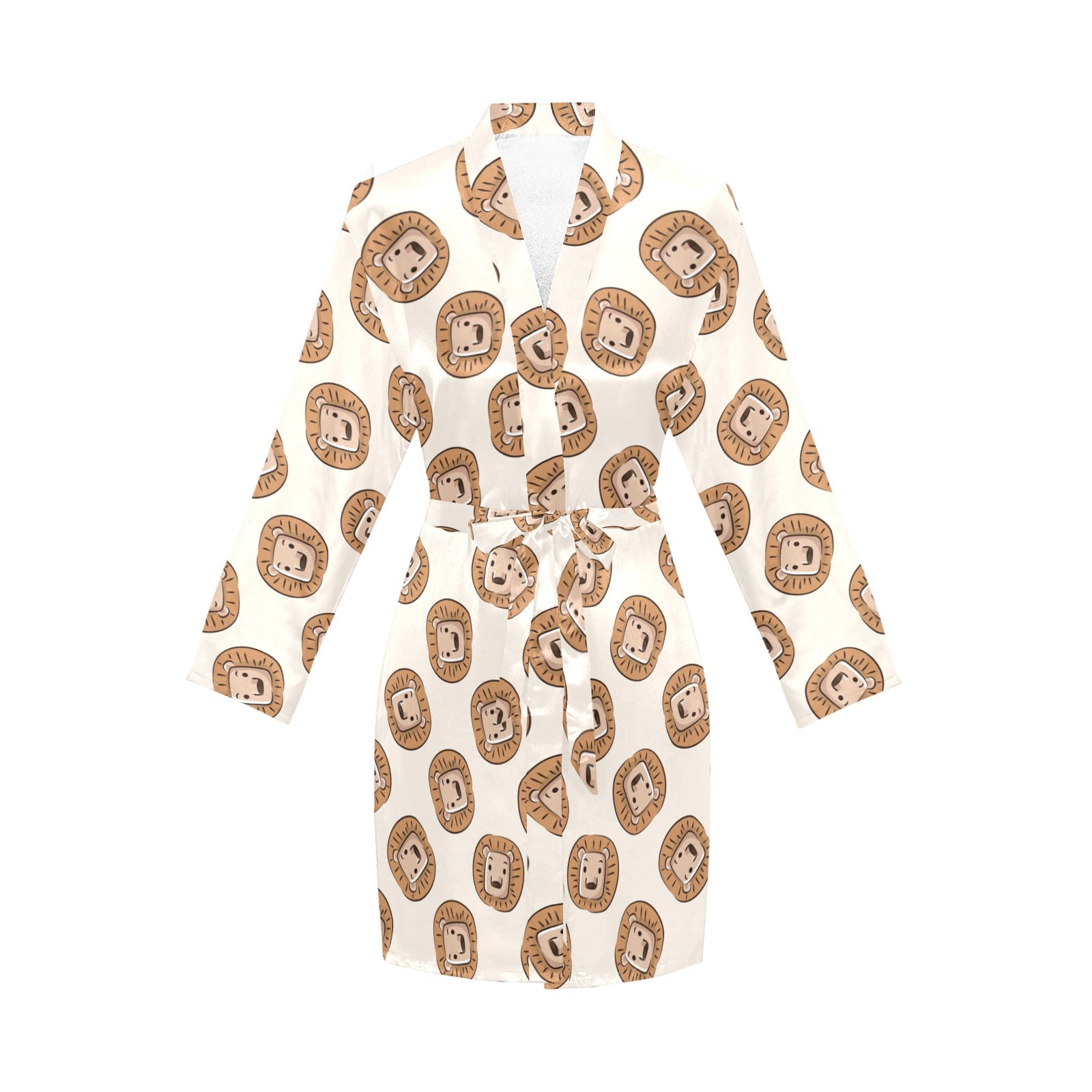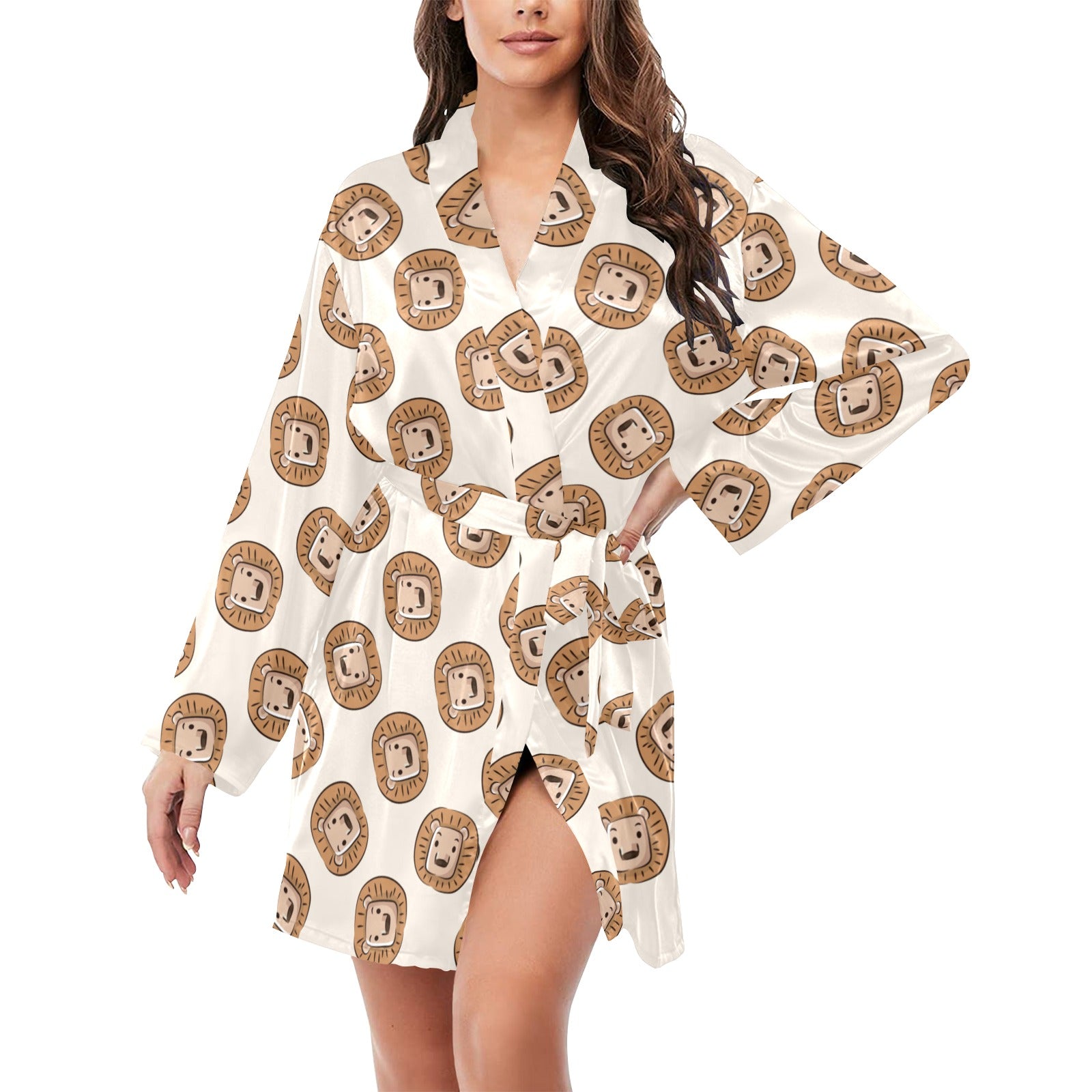 Lion Pattern Print Design 01 Women's Long Sleeve Belted Night Robe