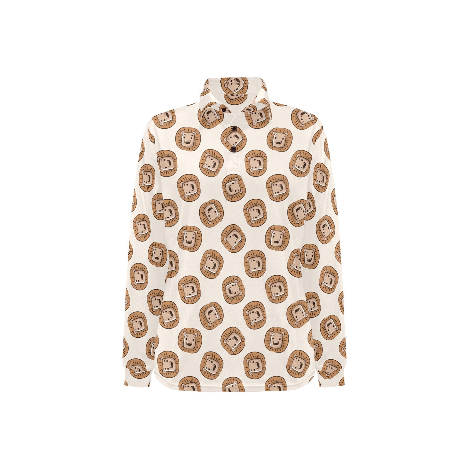 Lion Pattern Print Design 01 Women's Long Sleeve Polo Shirt