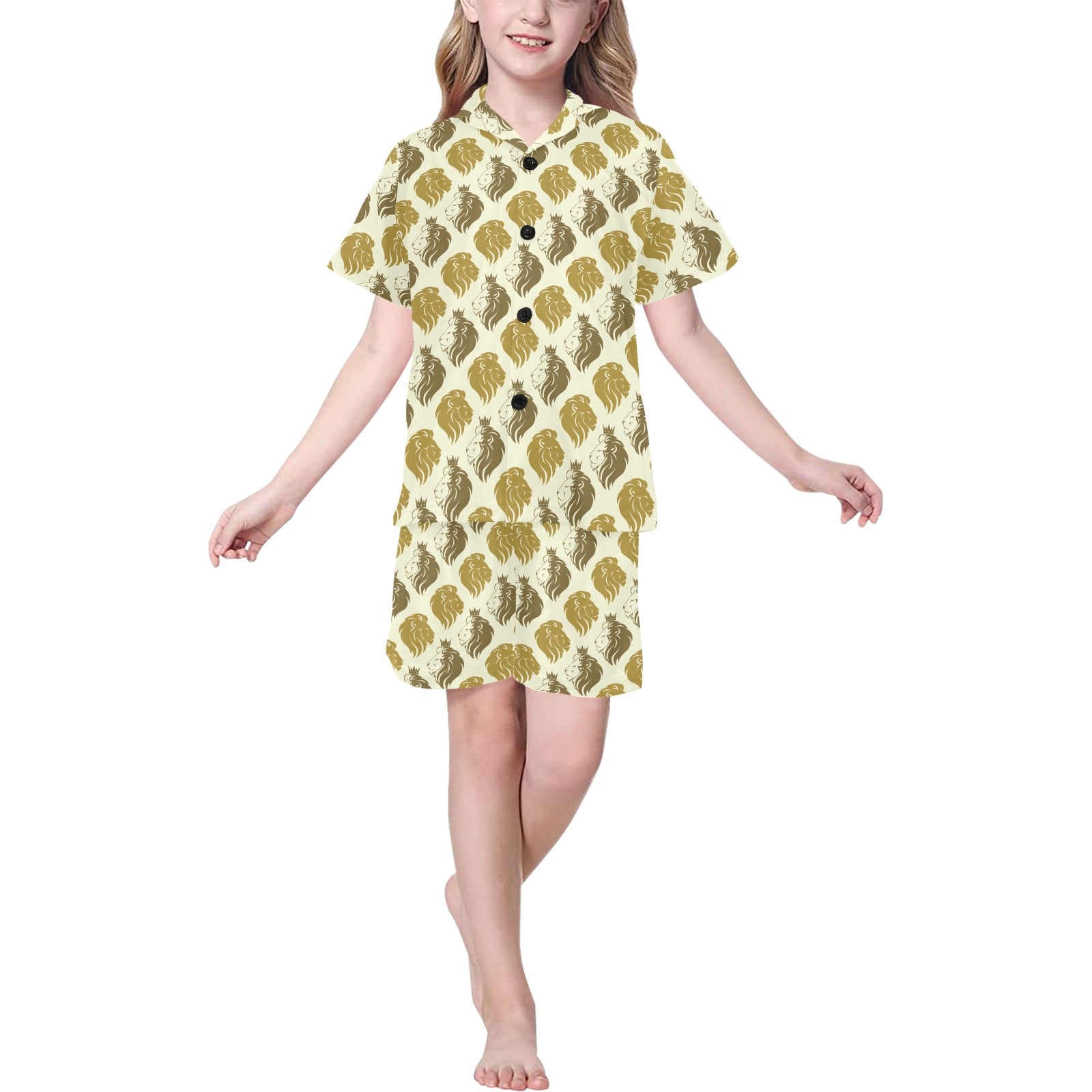 Lion Pattern Print Design 02 Kids' Boys' Girls' V-Neck Short Pajama Set