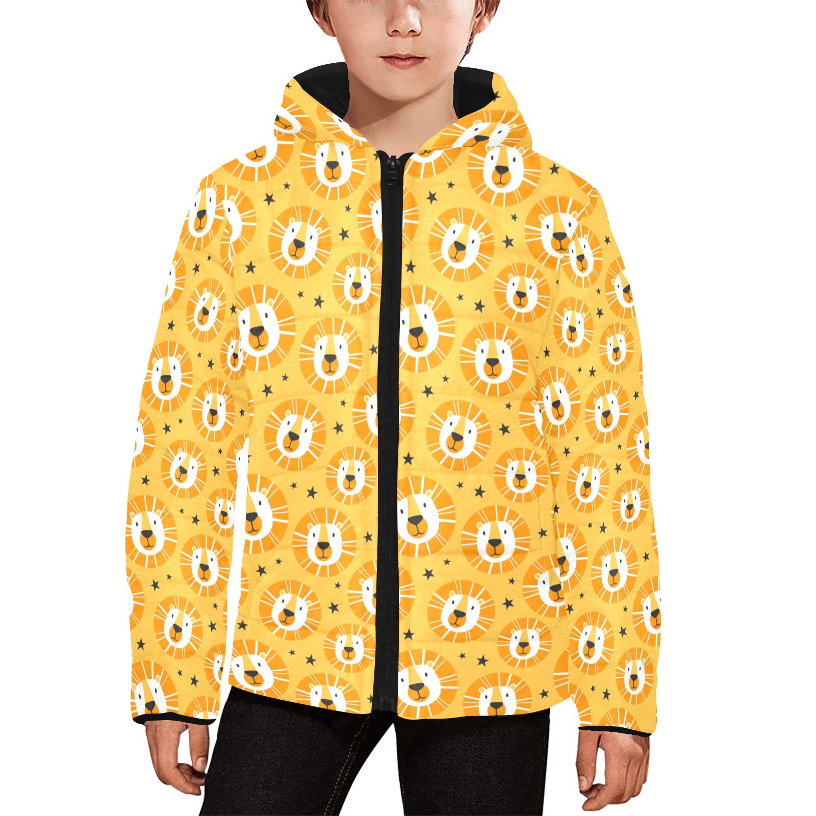 Lion Pattern Print Design 03 Kids' Boys' Girls' Padded Hooded Jacket