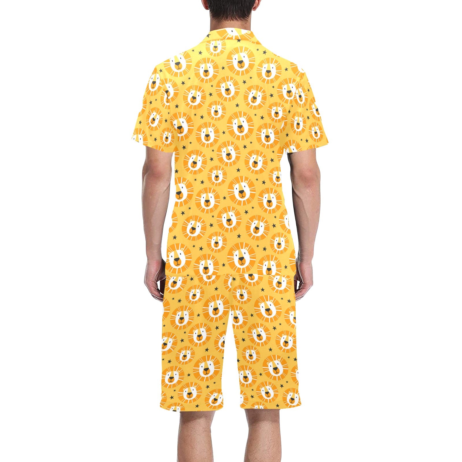 Lion Pattern Print Design 03 Men's V-Neck Short Pajama Set