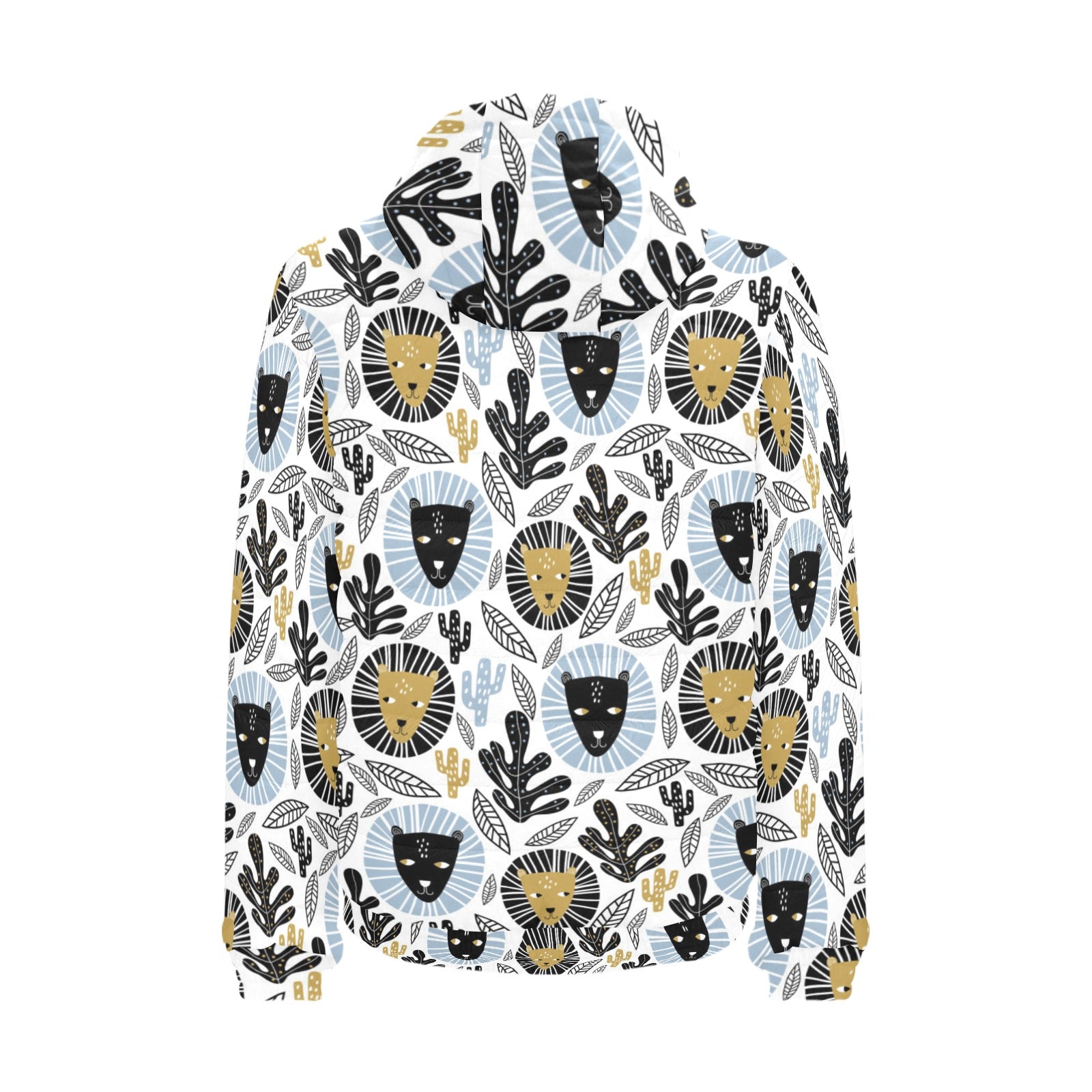Lion Pattern Print Design 05 Men's Padded Hooded Jacket