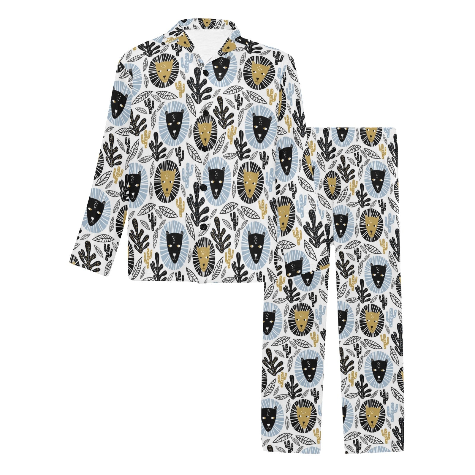 Lion Pattern Print Design 05 Men's Long Pajama Set