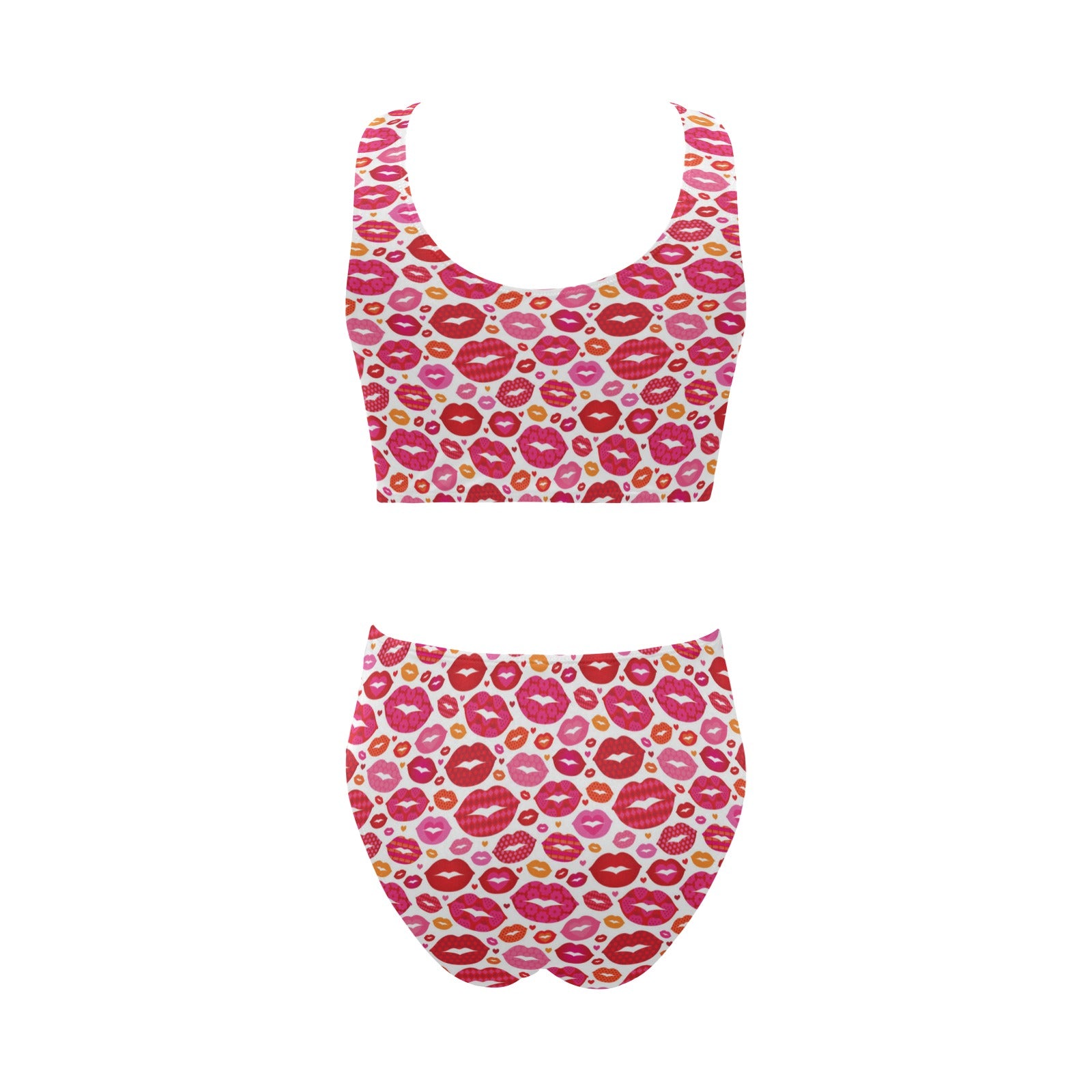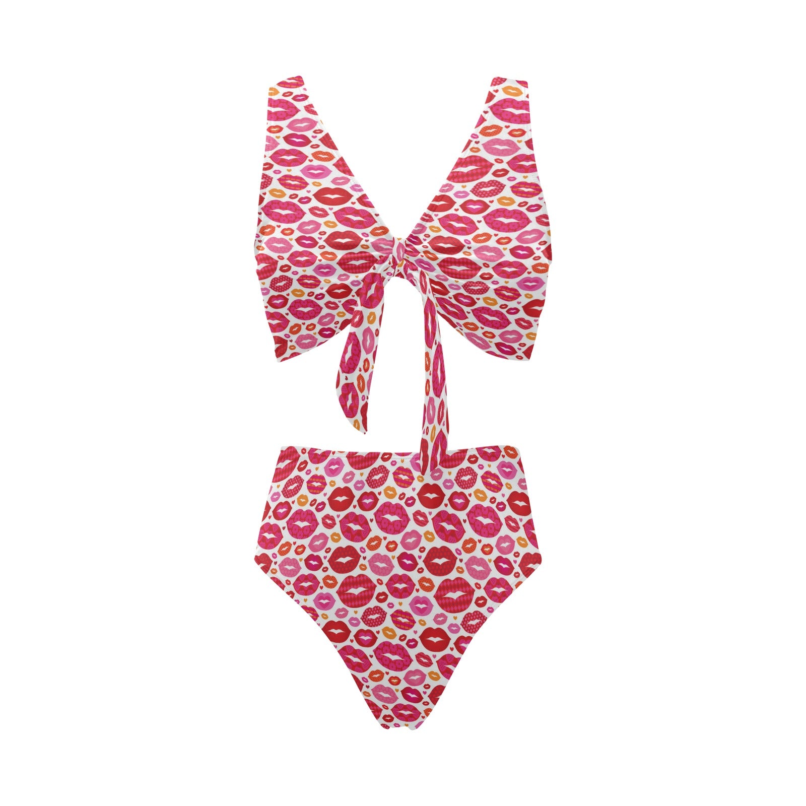 Lips Pattern Print Design 01 Chest Bowknot High Waisted Bikini Swimsuit