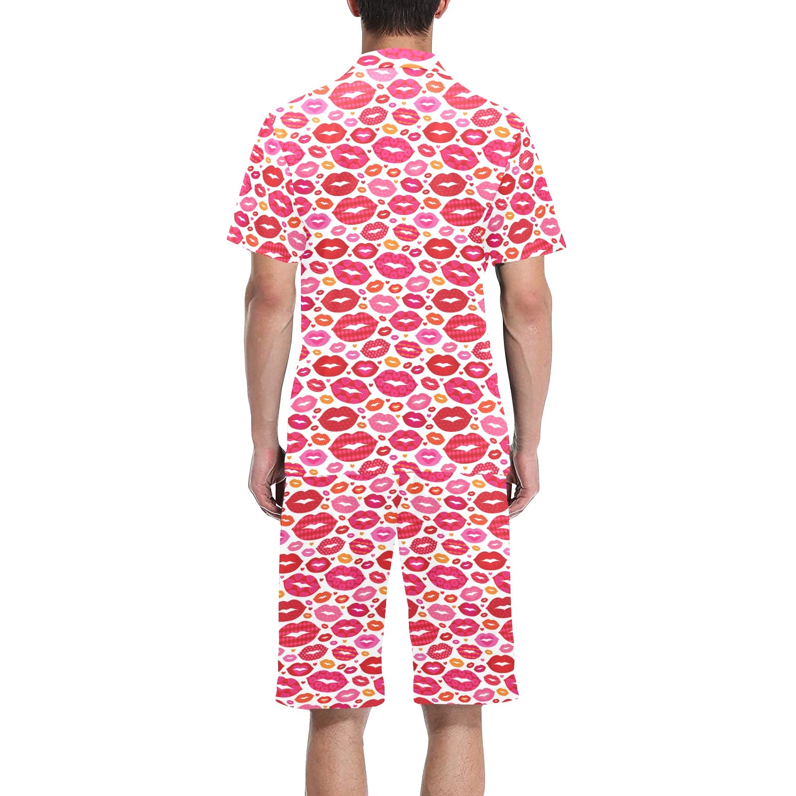 Lips Pattern Print Design 01 Men's V-Neck Short Pajama Set