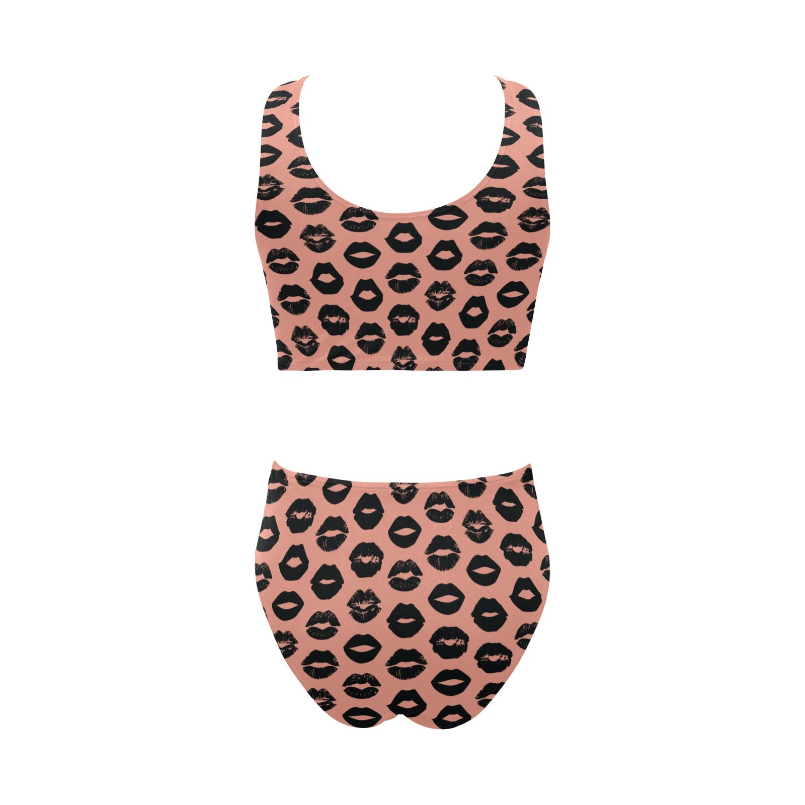 Lips Pattern Print Design 02 Chest Bowknot High Waisted Bikini Swimsuit
