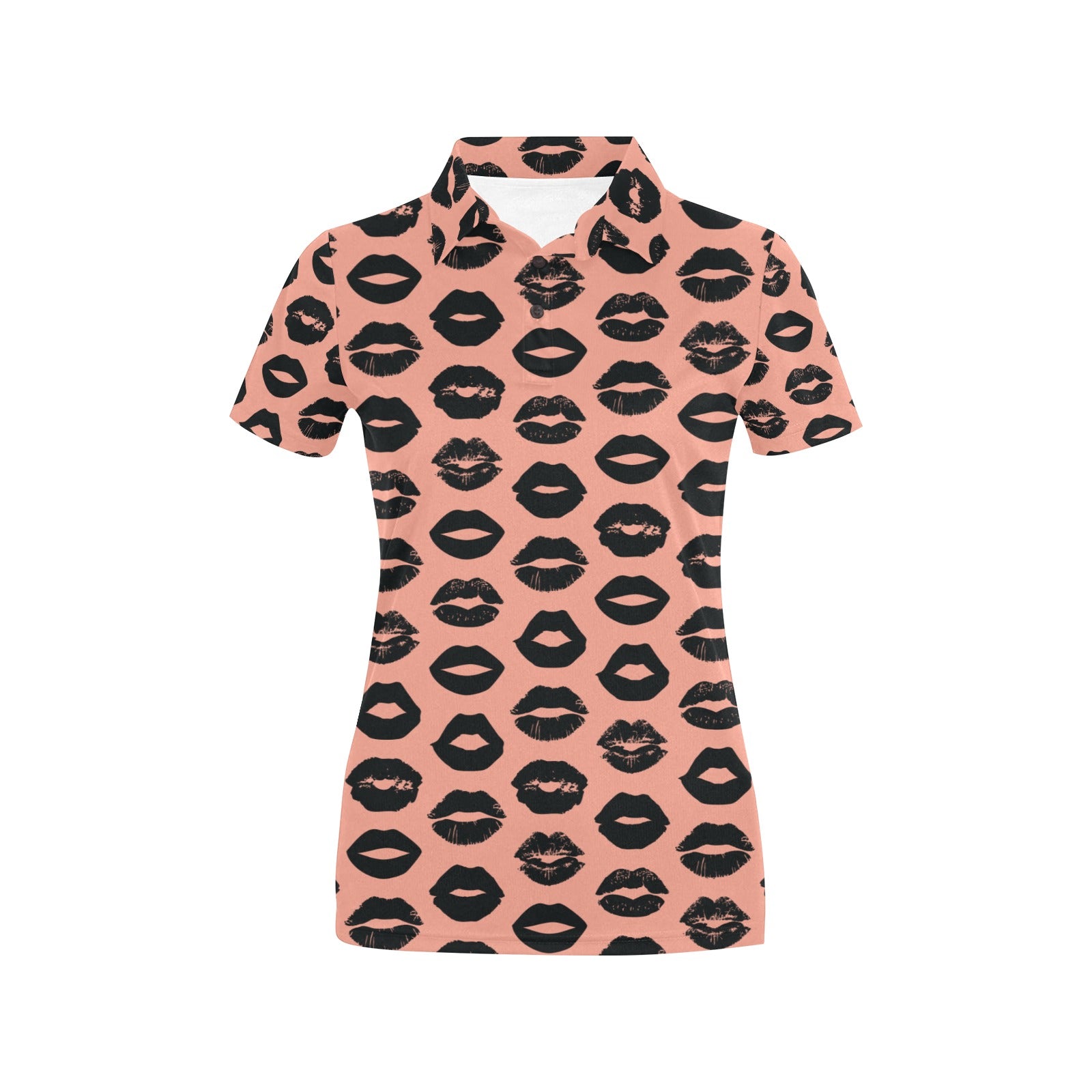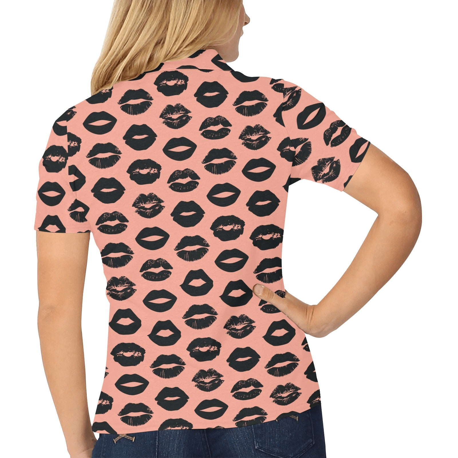 Lips Pattern Print Design 02 Women's All Over Print Polo Shirt