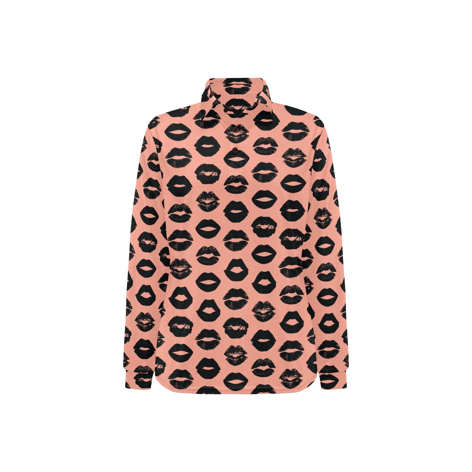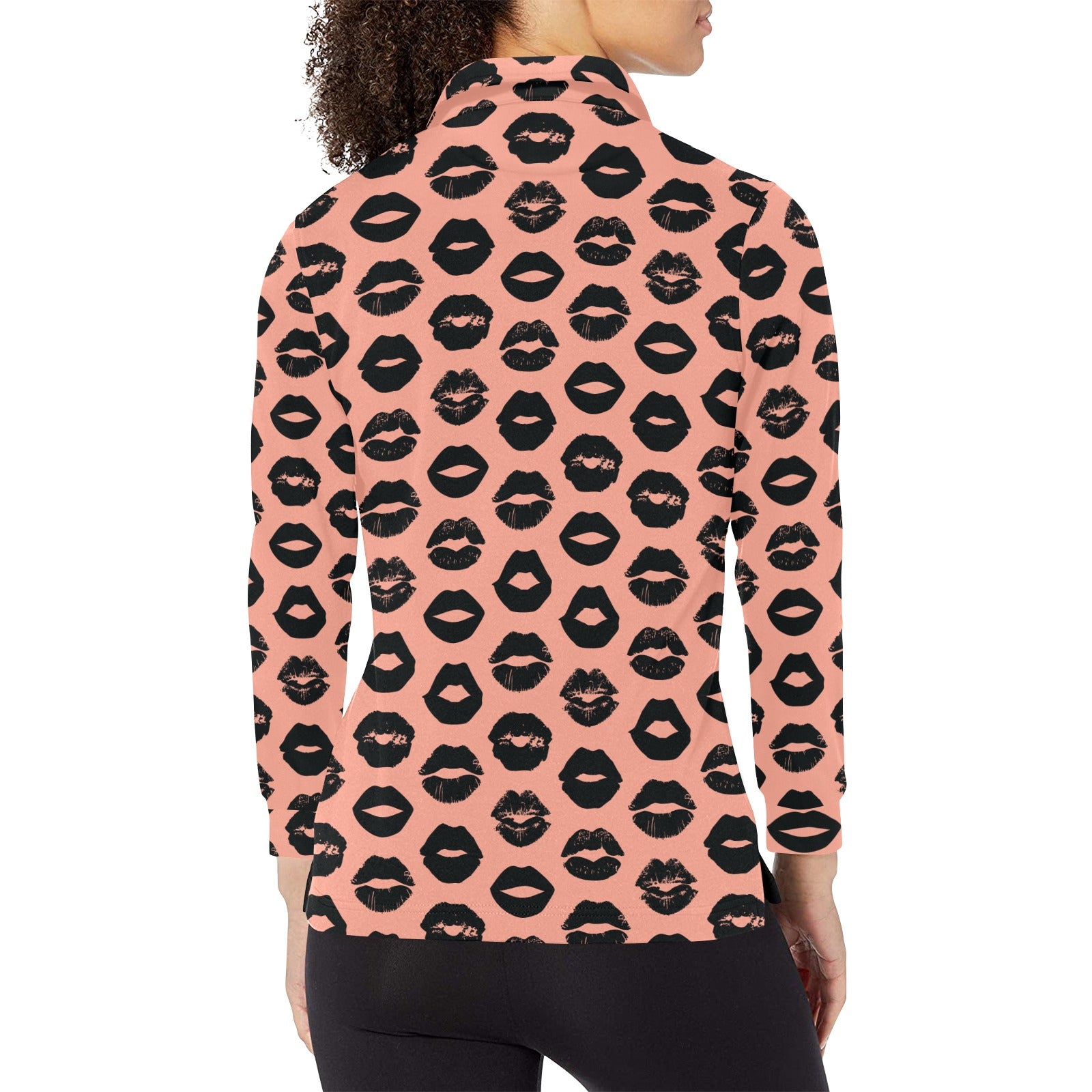 Lips Pattern Print Design 02 Women's Long Sleeve Polo Shirt