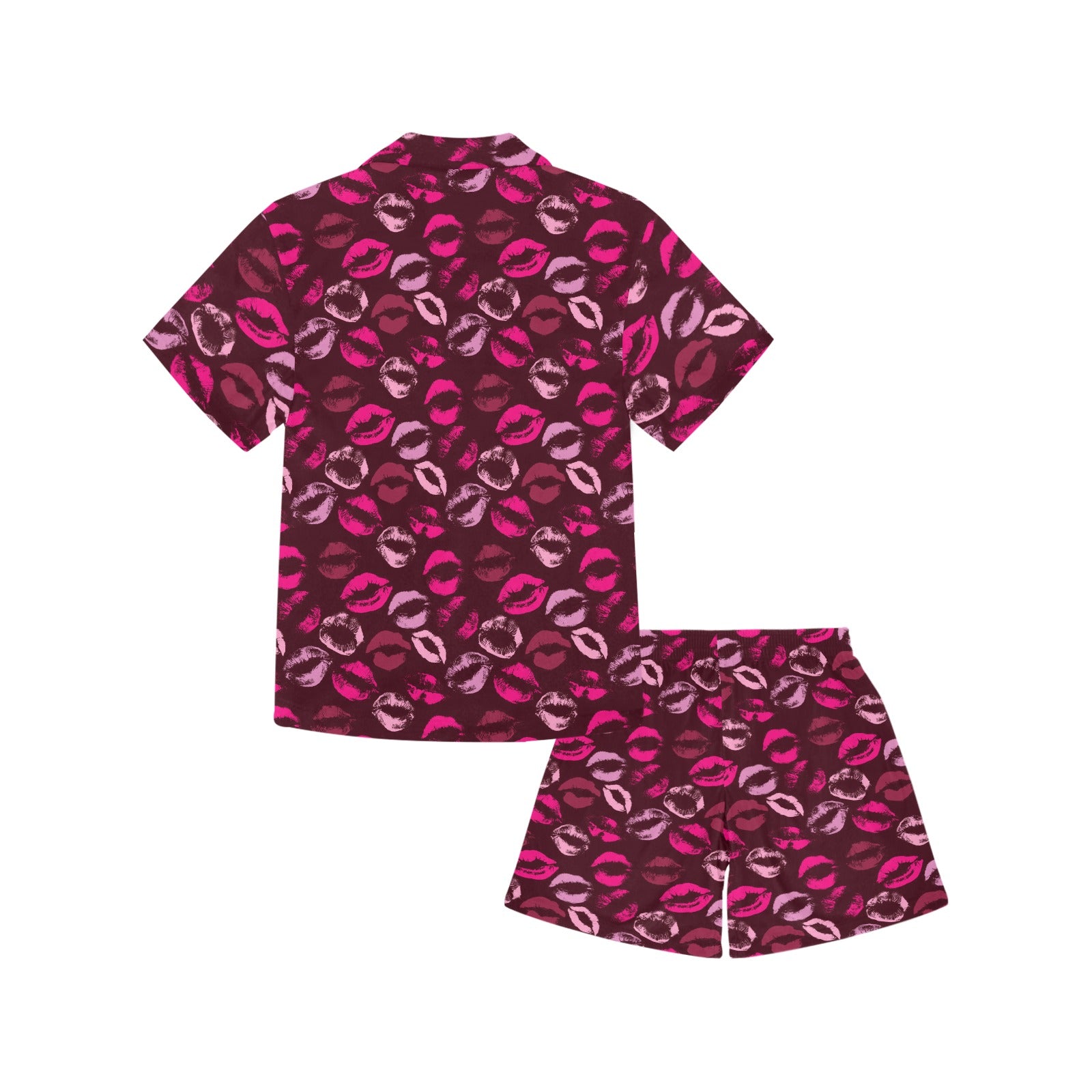 Lips Pattern Print Design 03 Kids' Boys' Girls' V-Neck Short Pajama Set