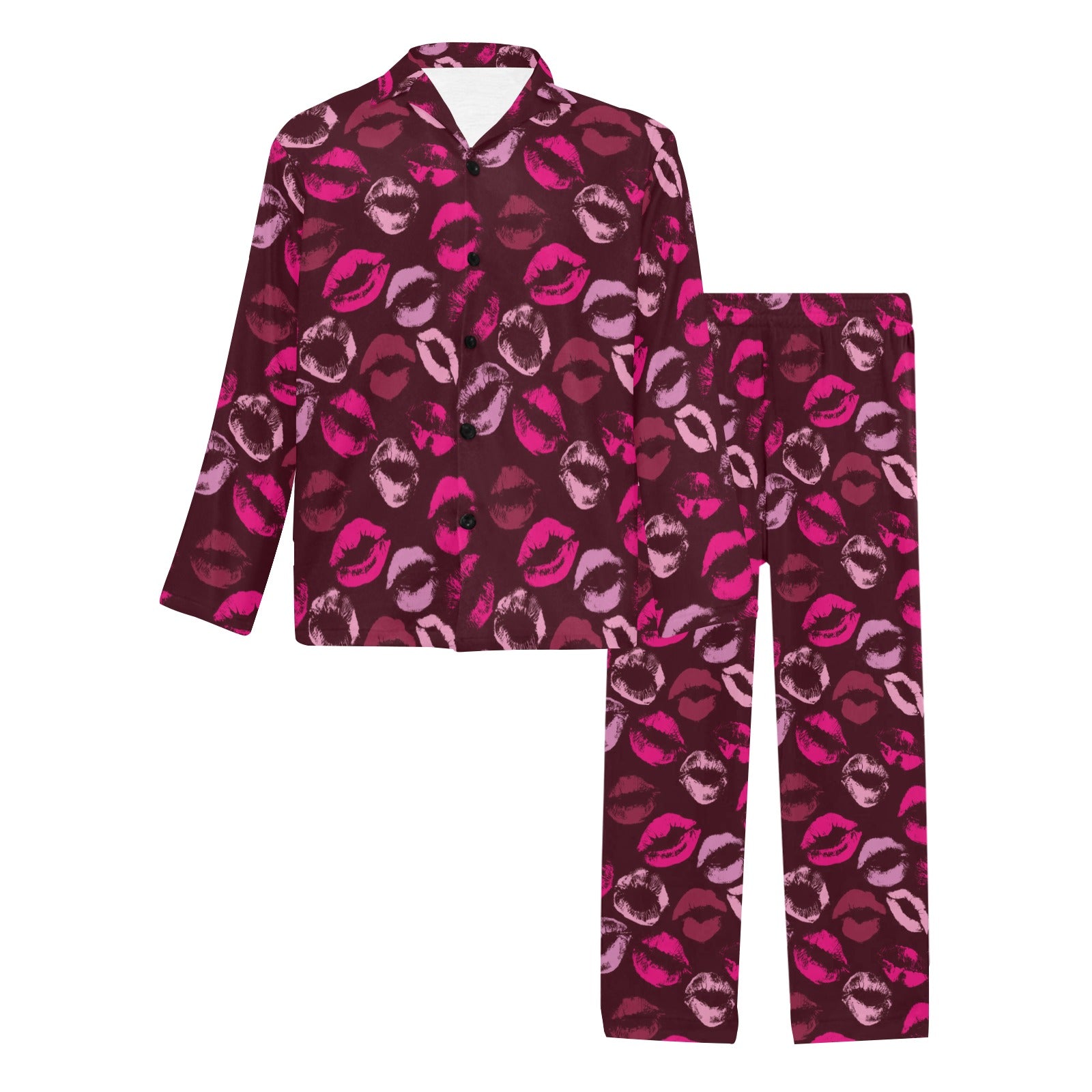 Lips Pattern Print Design 03 Men's Long Pajama Set