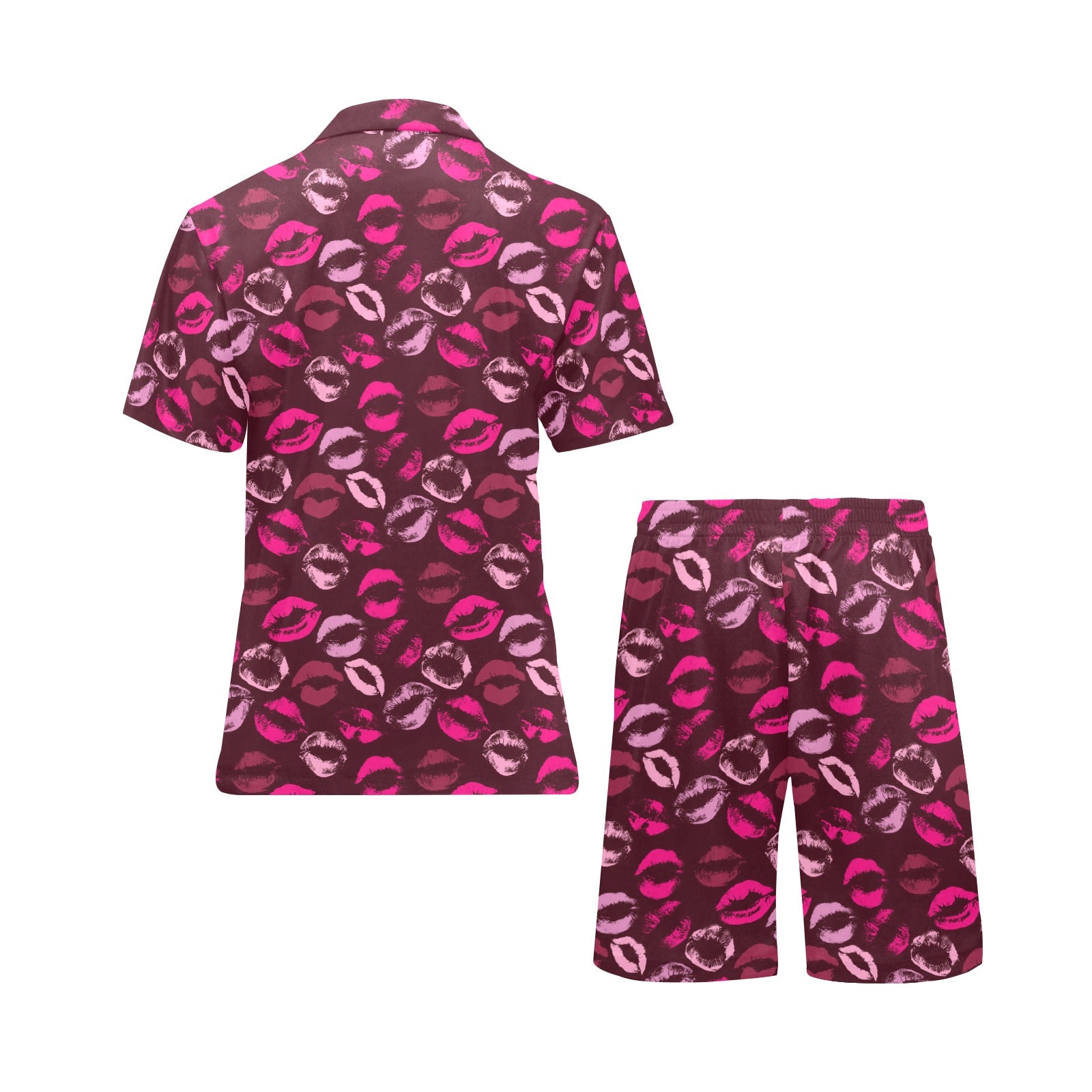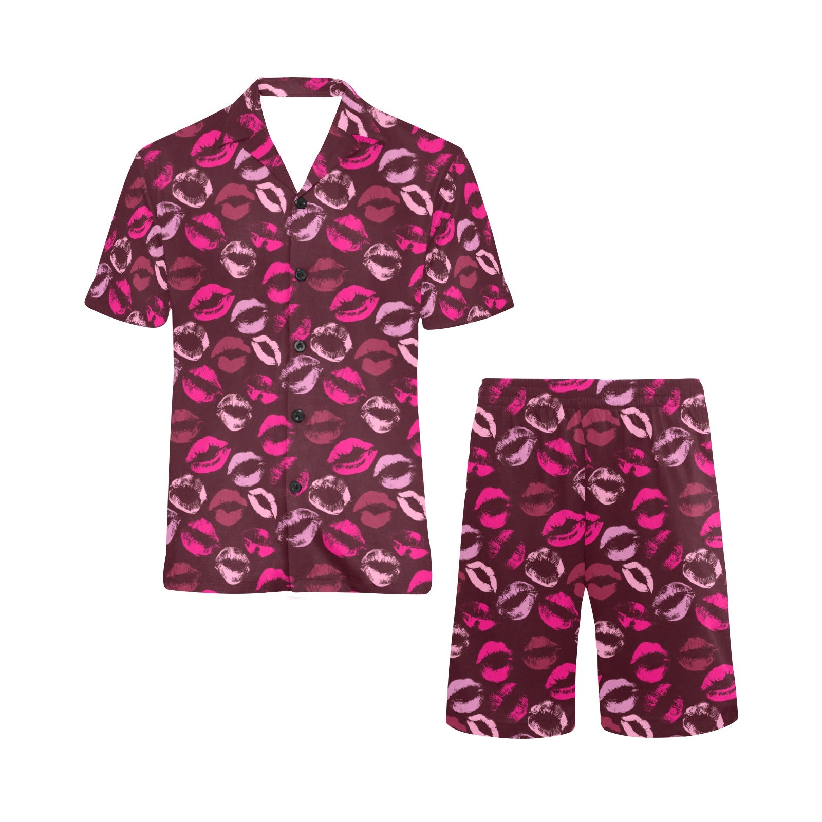Lips Pattern Print Design 03 Men's V-Neck Short Pajama Set