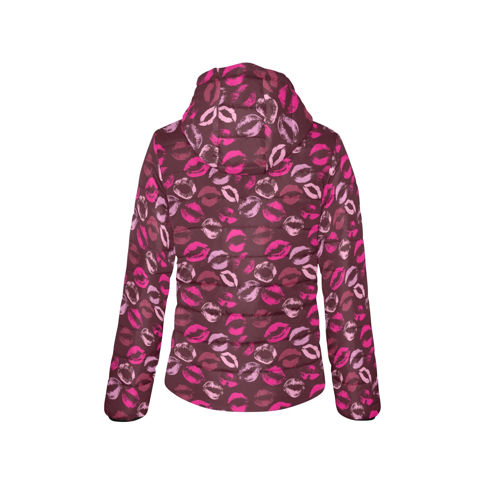 Lips Pattern Print Design 03 Women's Padded Hooded Jacket