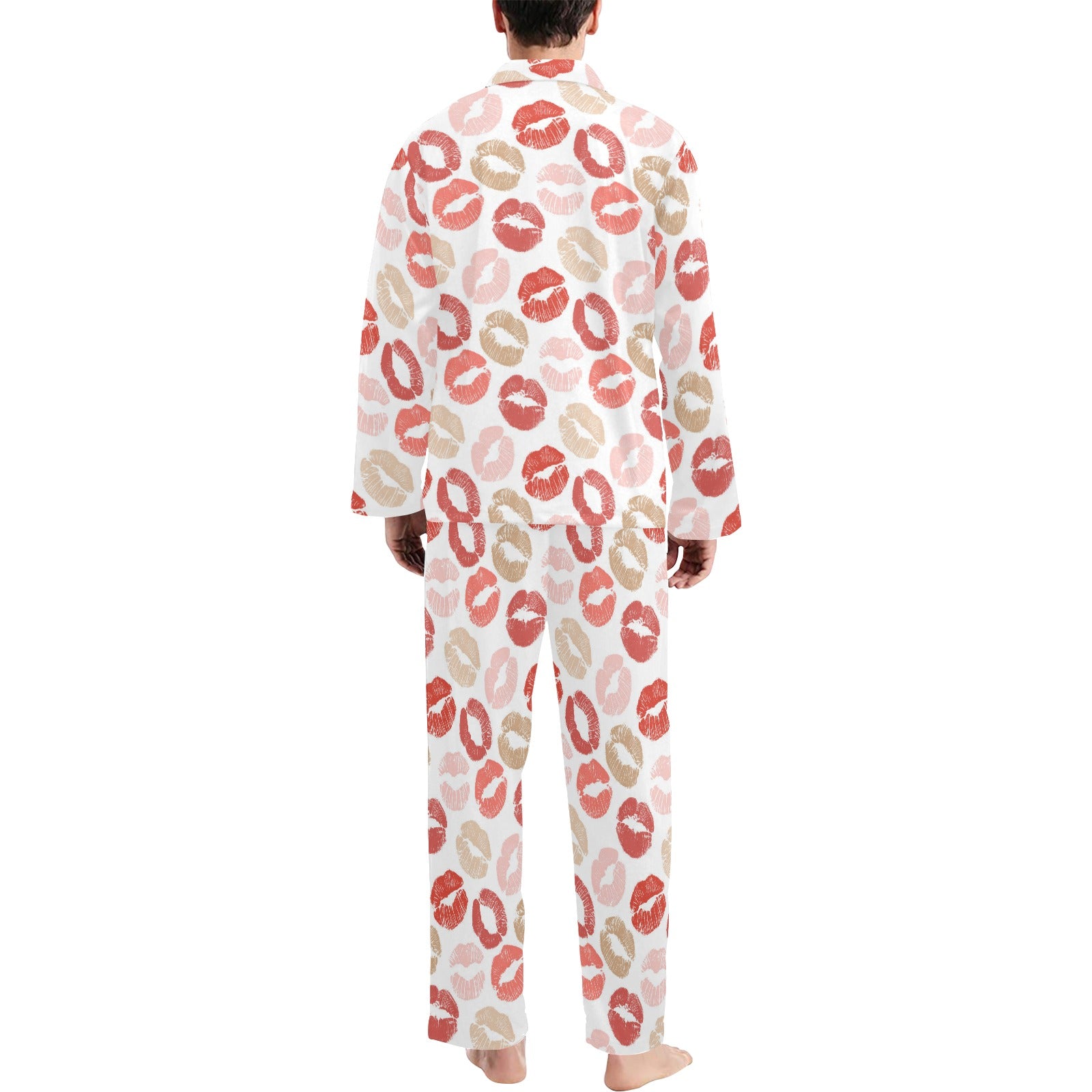 Lips Pattern Print Design 04 Men's Long Pajama Set