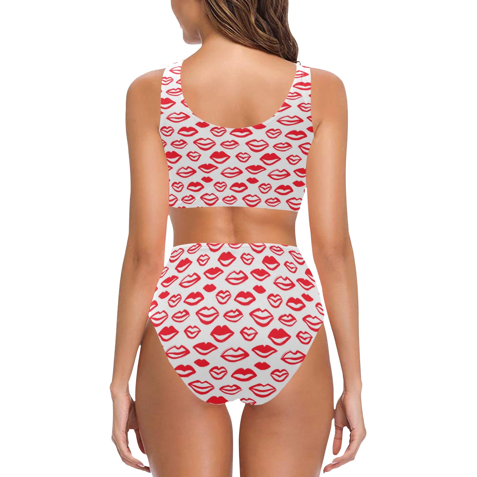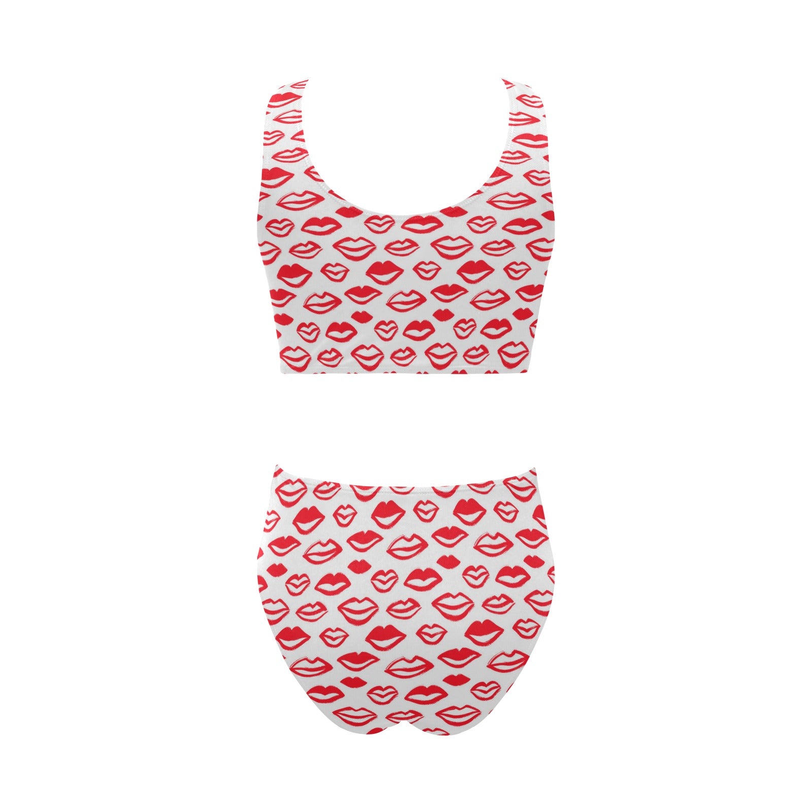 Lips Pattern Print Design 05 Chest Bowknot High Waisted Bikini Swimsuit