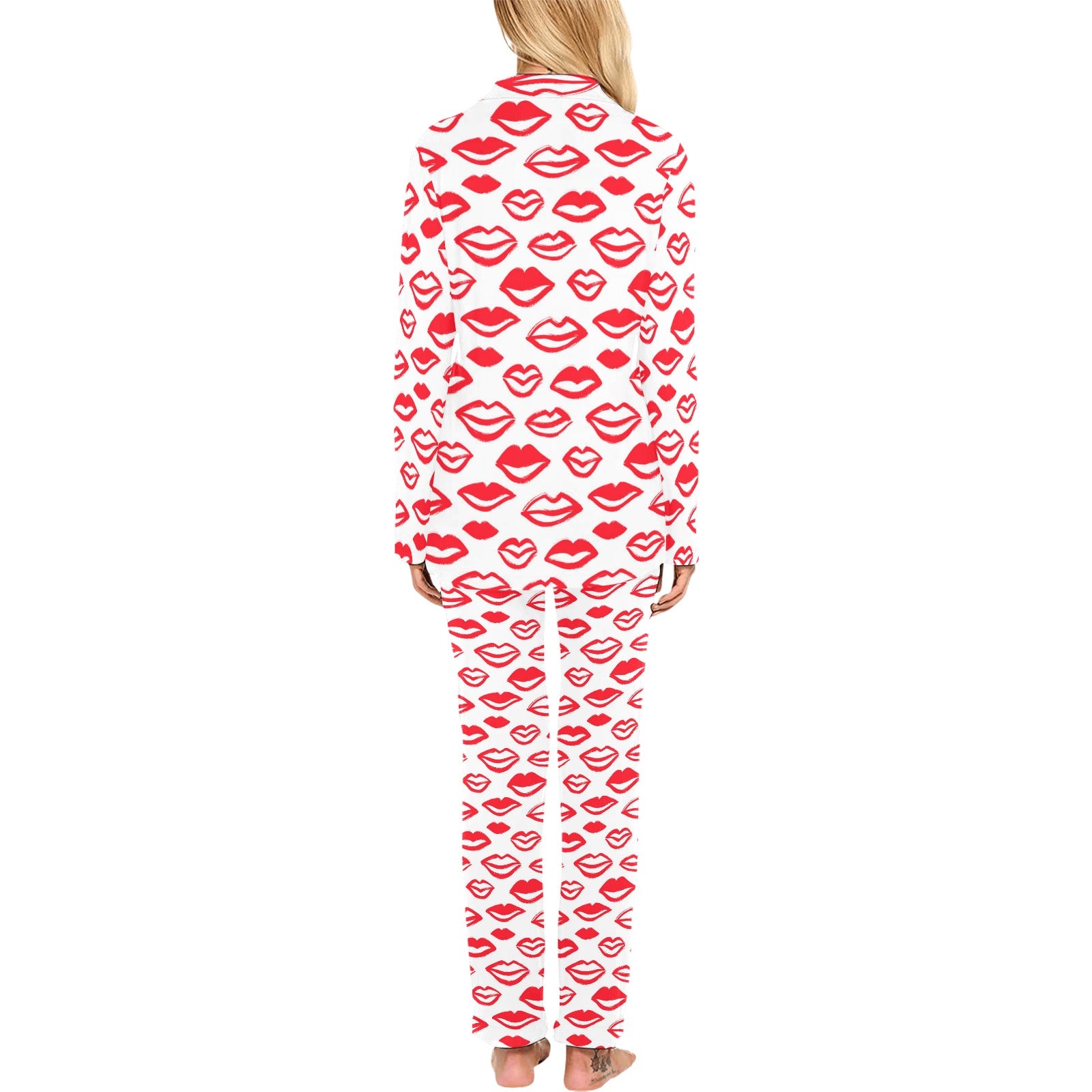 Lips Pattern Print Design 05 Women's Long Pajama Set