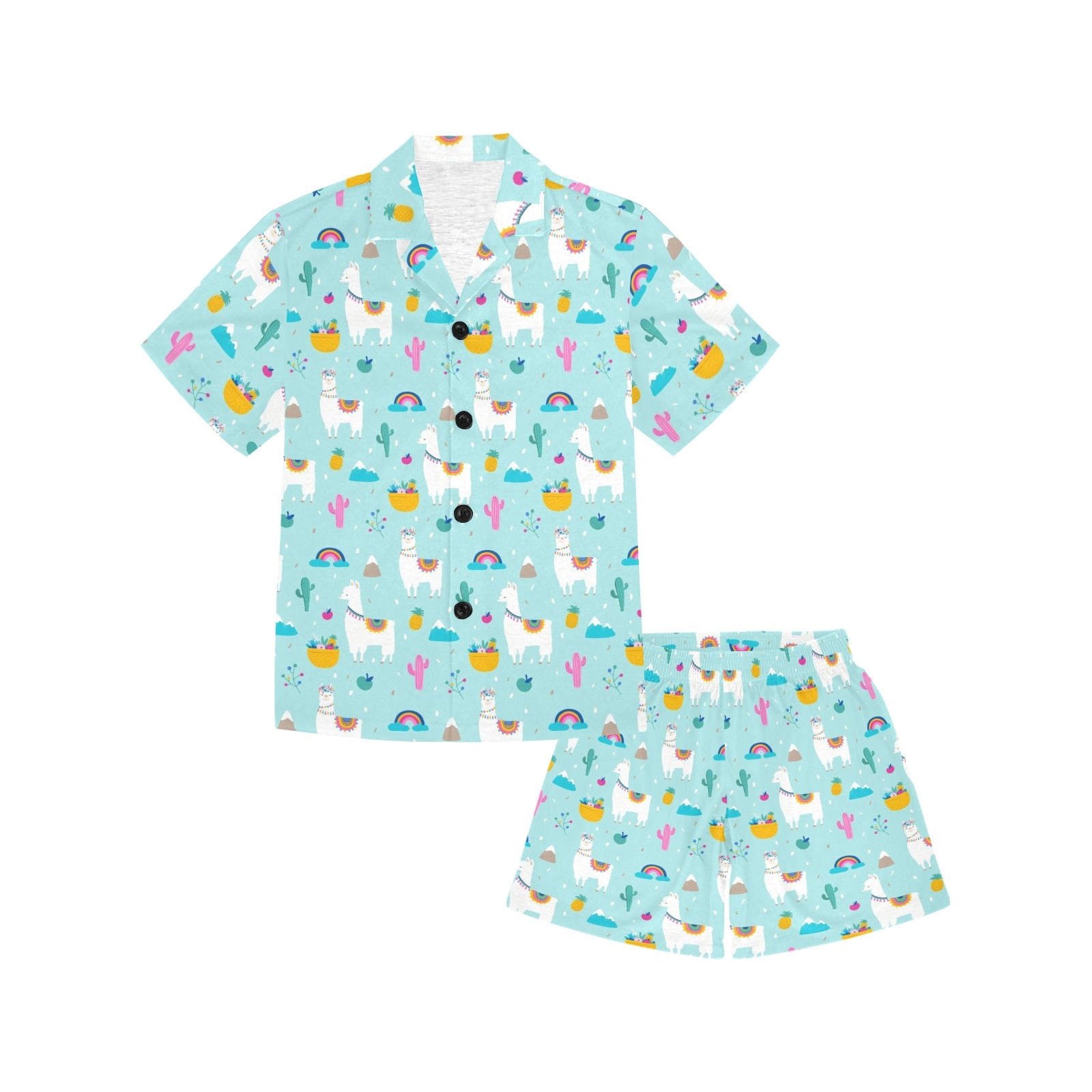 Llama alpaca cactus leaves pattern Kids' Boys' Girls' V-Neck Short Pajama Set