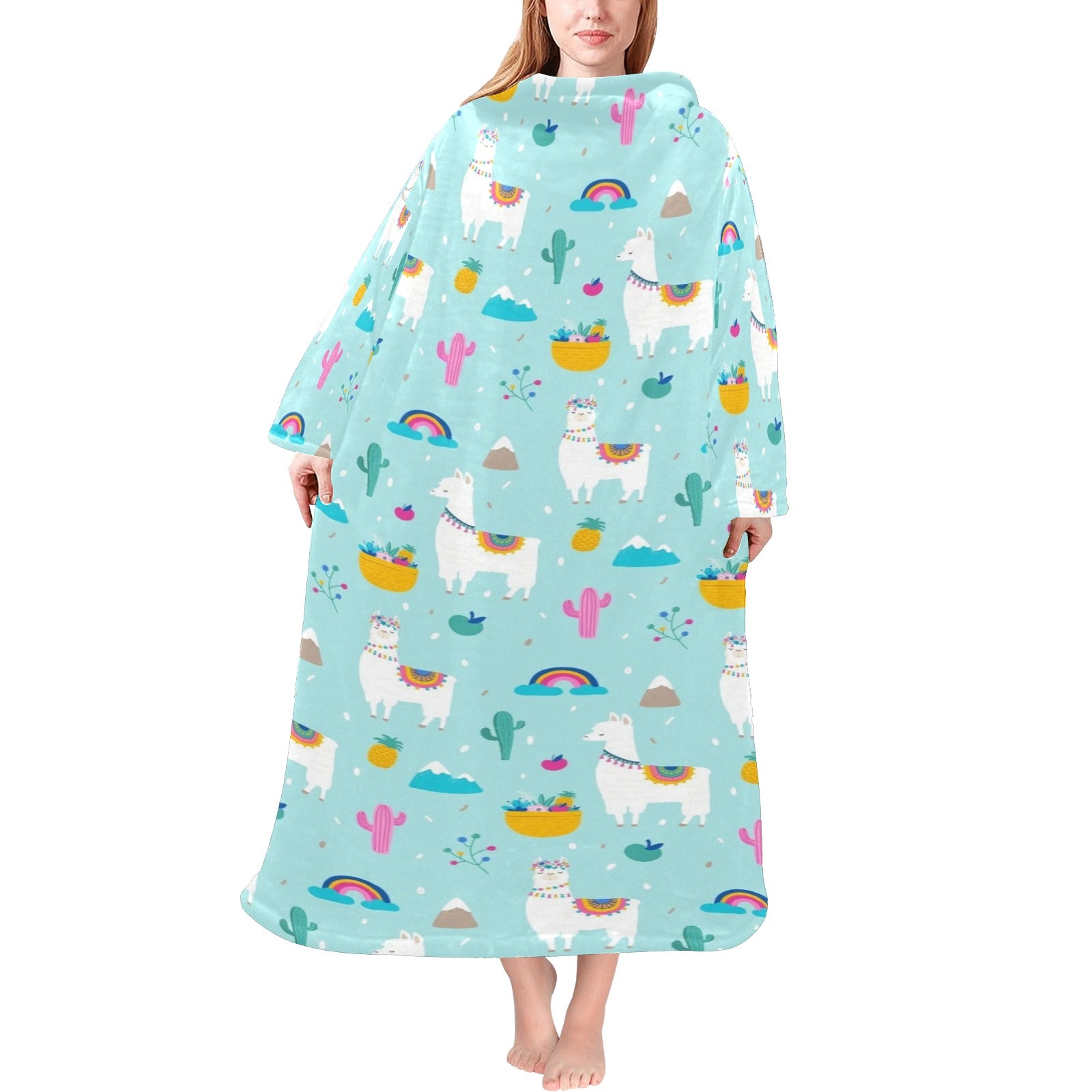 Llama alpaca cactus leaves pattern Blanket Robe with Sleeves