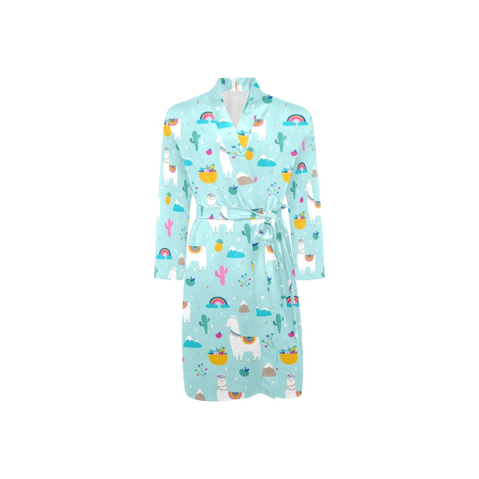 Llama alpaca cactus leaves pattern Men's Long Sleeve Belted Night Robe