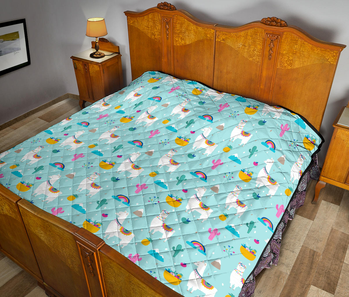 Llama Alpaca Cactus Leaves Pattern Premium Quilt is a uniqued design and limited item. It made to order, hand printed, and sewn with love in our factory.