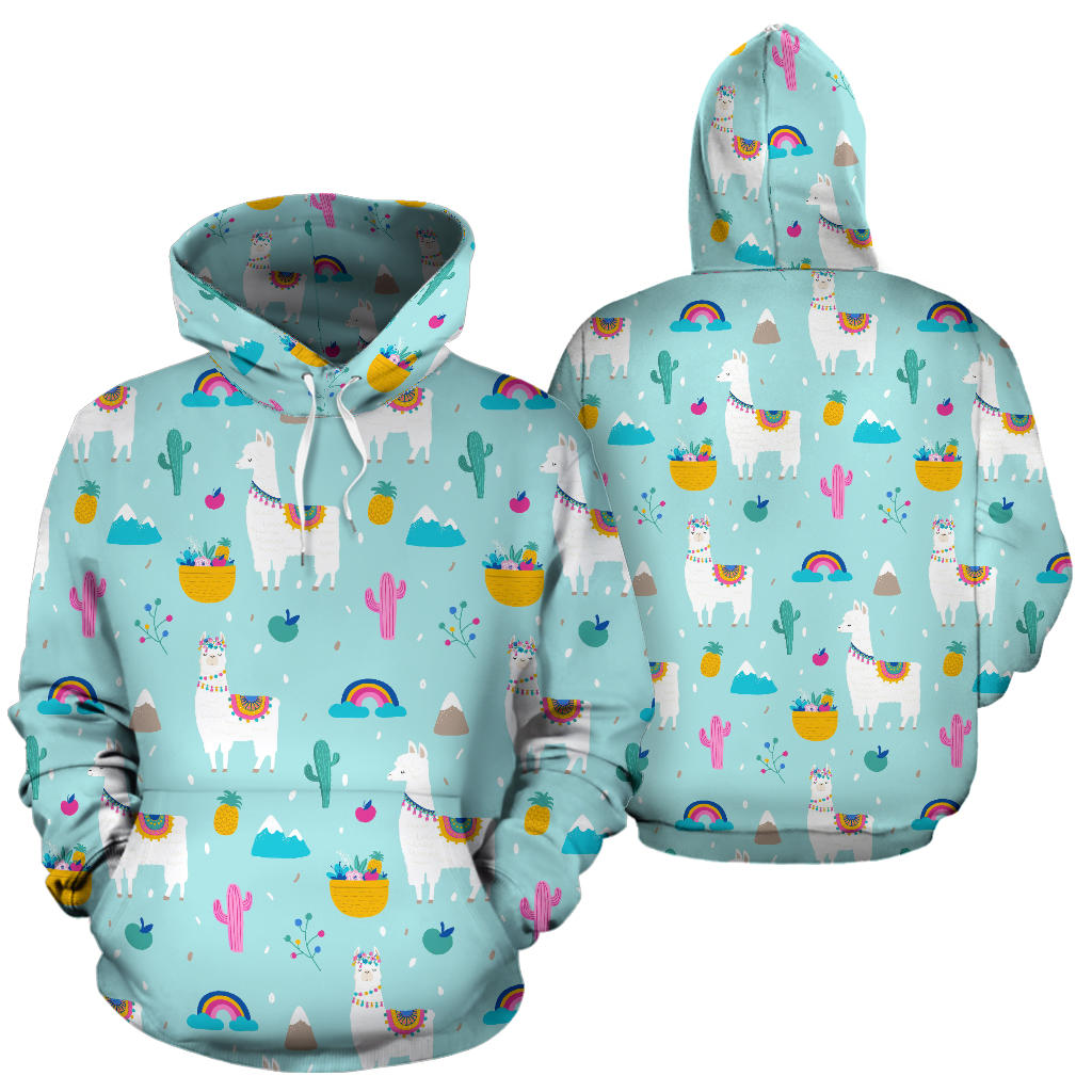 Llama Alpaca Cactus Leaves Pattern Men Women Pullover Hoodie