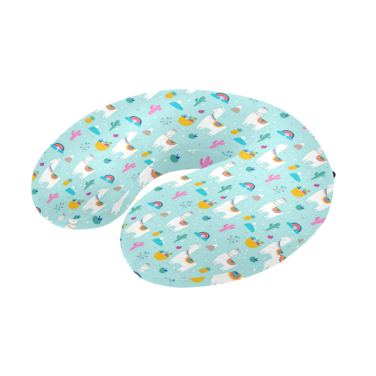 Llama alpaca cactus leaves pattern U-Shaped Travel Neck Pillow