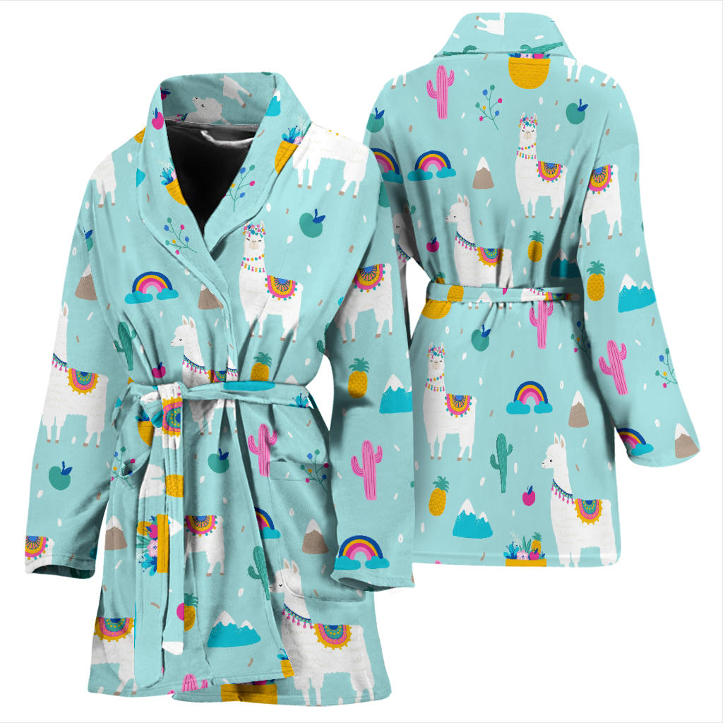 Llama Alpaca Cactus Leaves Pattern Women'S Bathrobe