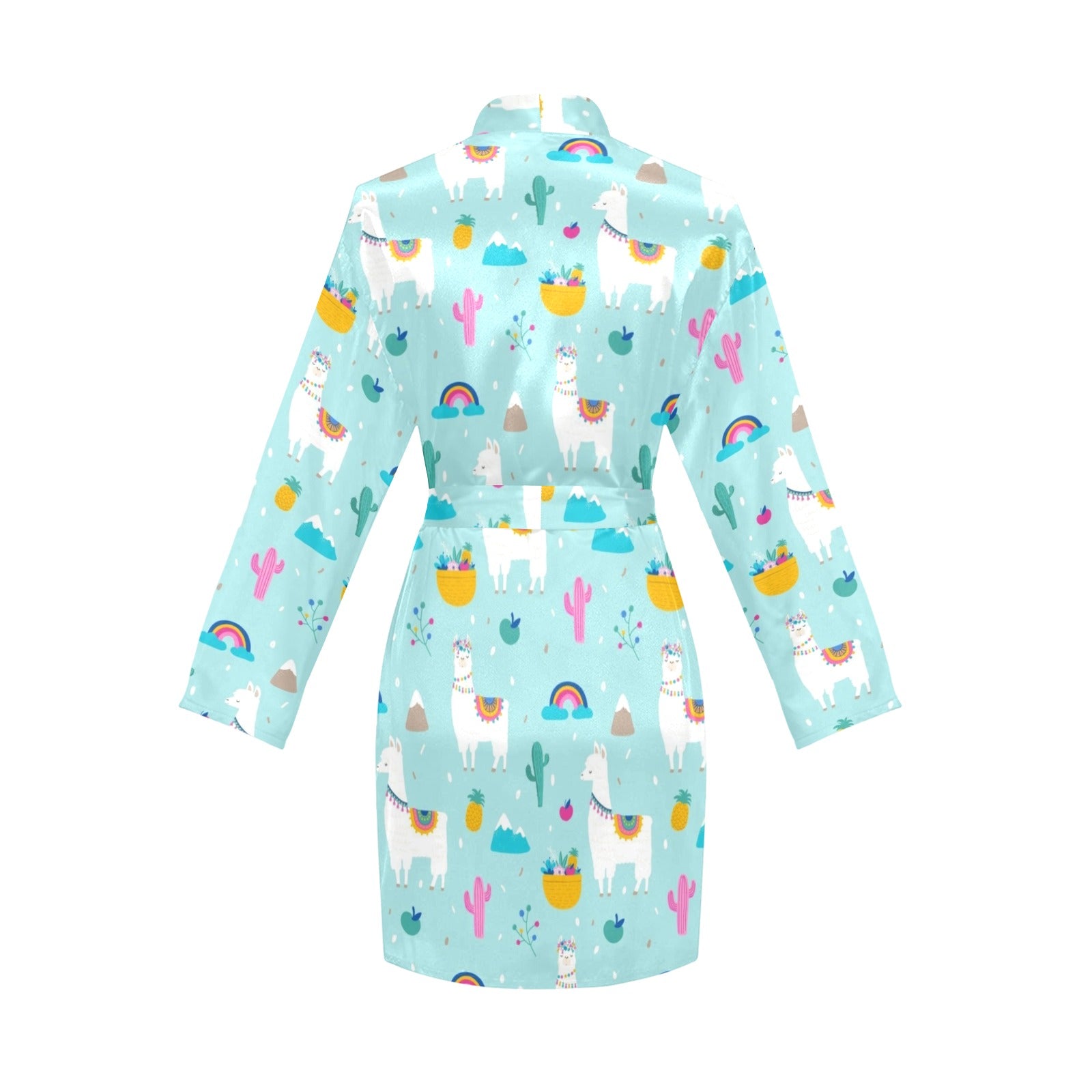 Llama alpaca cactus leaves pattern Women's Long Sleeve Belted Night Robe