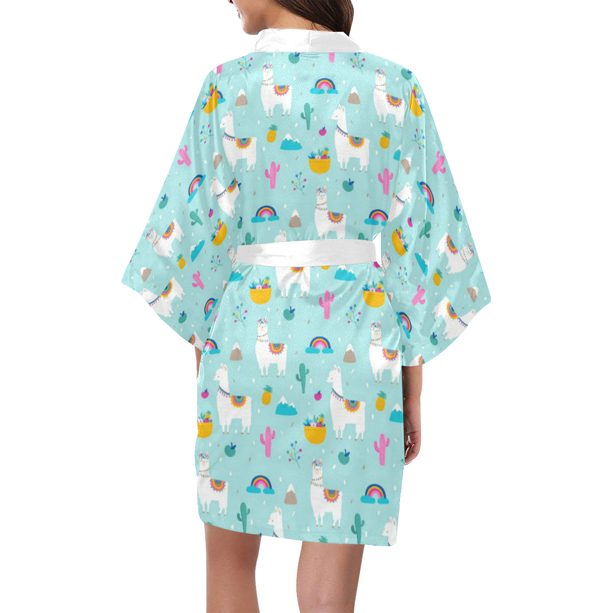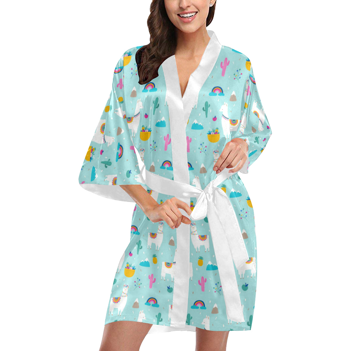 Llama alpaca cactus leaves pattern Women's Short Kimono Robe is a uniqued design and limited item. It made to order, hand printed, and sewn with love in our factory.